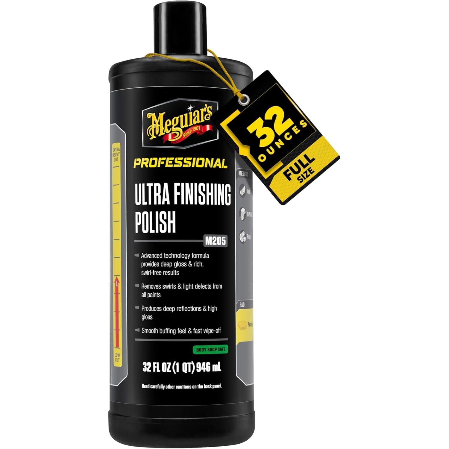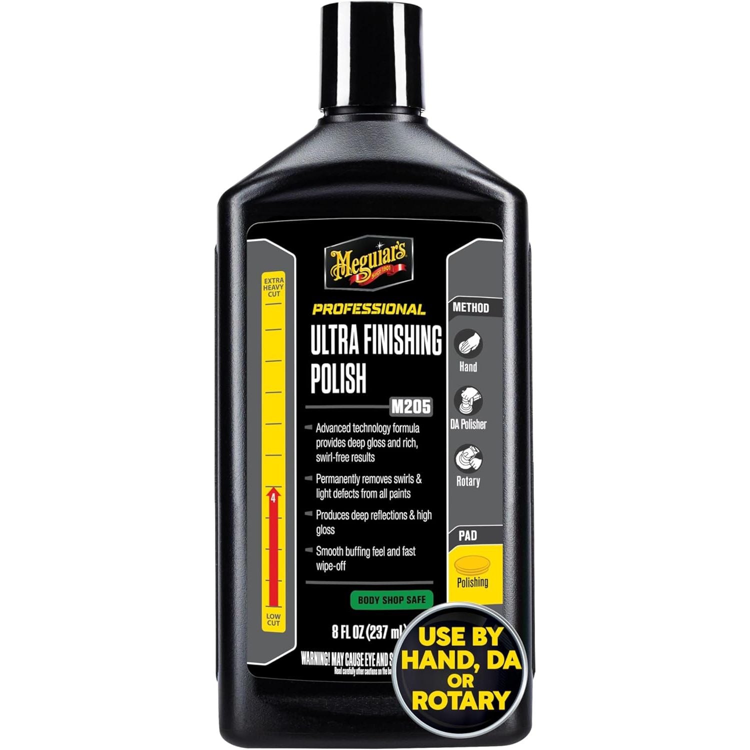 Meguiar's Mirror Glaze Ultra-Cut buffing compound for cars comes to the rescue as one of the best car care products for handling oxidized car exterior paint, removing scratches, severe swirls, holograms, acid rain, and other defects from your paint finish and leaving it with a best-in-class, mirror-like gloss that shows off an impeccable shine. Made with proprietary super micro-abrasive technology, Mirror Glaze Ultra-Cut rubbing compound for cars removes sanding marks 1200 grit or finer with unmatched speed. Our professional-grade formula, geared towards body shops, is safe and effective on all glossy paint finishes, efficiently removing paint defects and increasing gloss without swirling or hazing car paint. Make your vehicle extra glossy with Meguiar's M205 Ultra Finishing Polish applied after the use of M105 Ultra Cut rubbing compound for car scratches and take your paint finishes to another level. This further refines the paint while enhancing gloss and shine, so you can approach the paint correction process like a pro. M205 Ultra-Finishing Polish is the perfect option for removing any remaining light swirls and holograms while further increasing shine before applying the Meguiar’s wax or coating of your choice. Mirror Glaze heavy cut compound is a professional grade formula that can be applied by the method of your choosing, whether with the precision of hand application, or the efficiency of a dual action polisher for cars/professional high-speed rotary buffer. You can also increase or decrease your cut as needed depending on the type of pad or disc you use. Take care of your paint and clear coats with a shine that turns heads with Meguiar's Mirror Glaze M105 Ultra-Cut Compound.