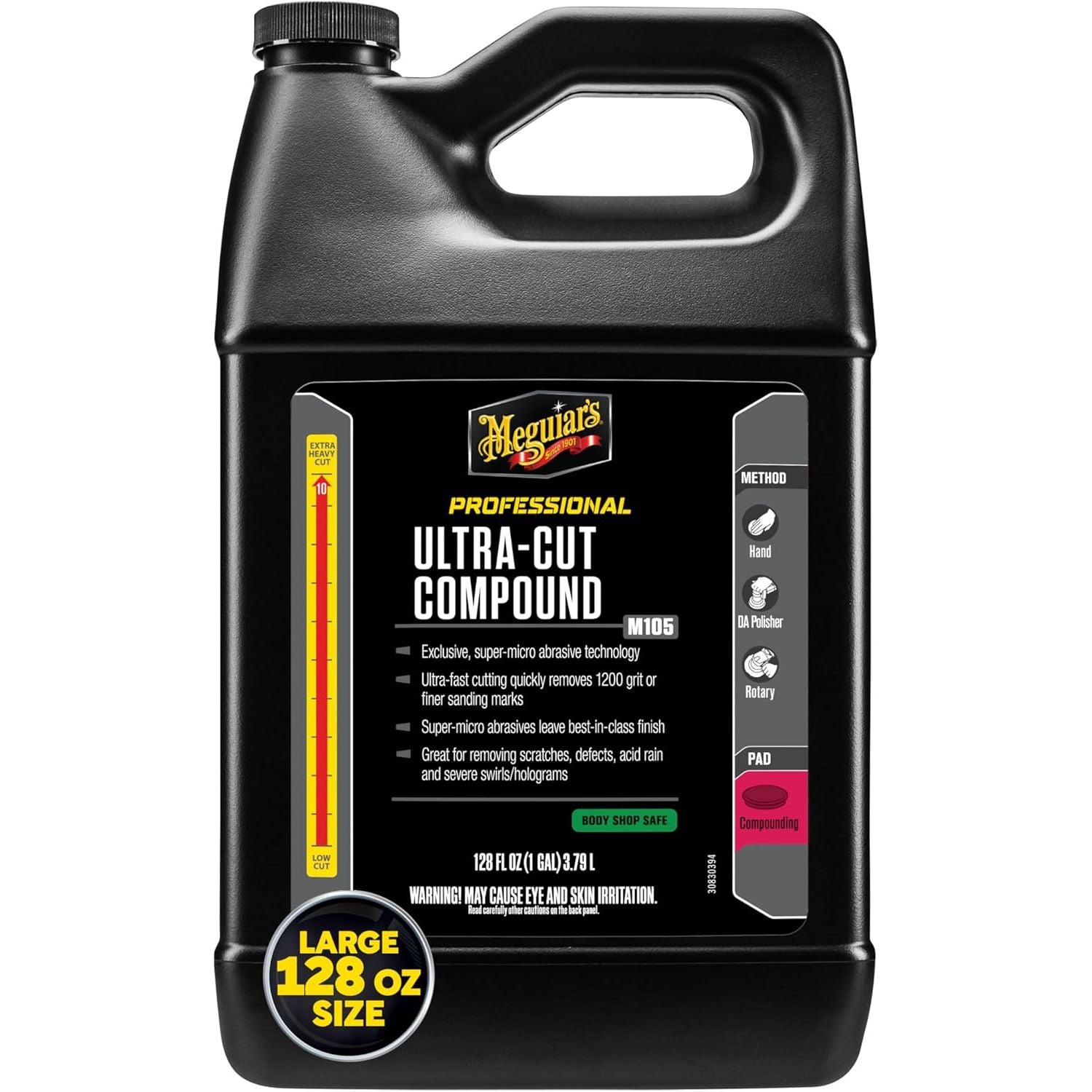 - SUPER CUT COMPOUND: While Meguiar M105’s ultra-fast cutting ability removes 1200 grit or finer sanding marks, micro-abrasives minimize further swirling and boost gloss and shine for a superior car cleaning experience