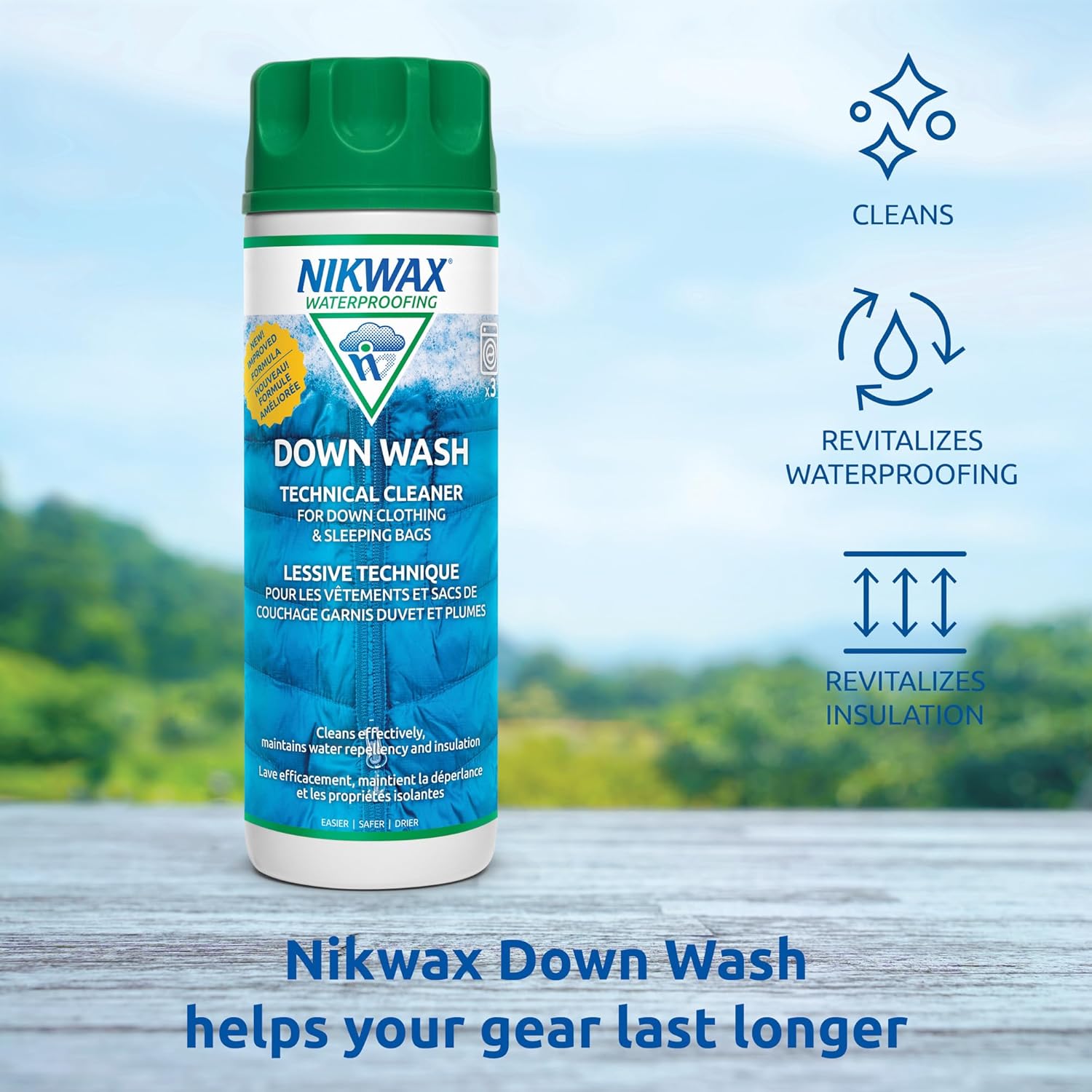 - Recommended for use on jackets, gear and bedding with down-fill, down blends, or water resistant down (such as Nikwax Hydrophobic Down)
