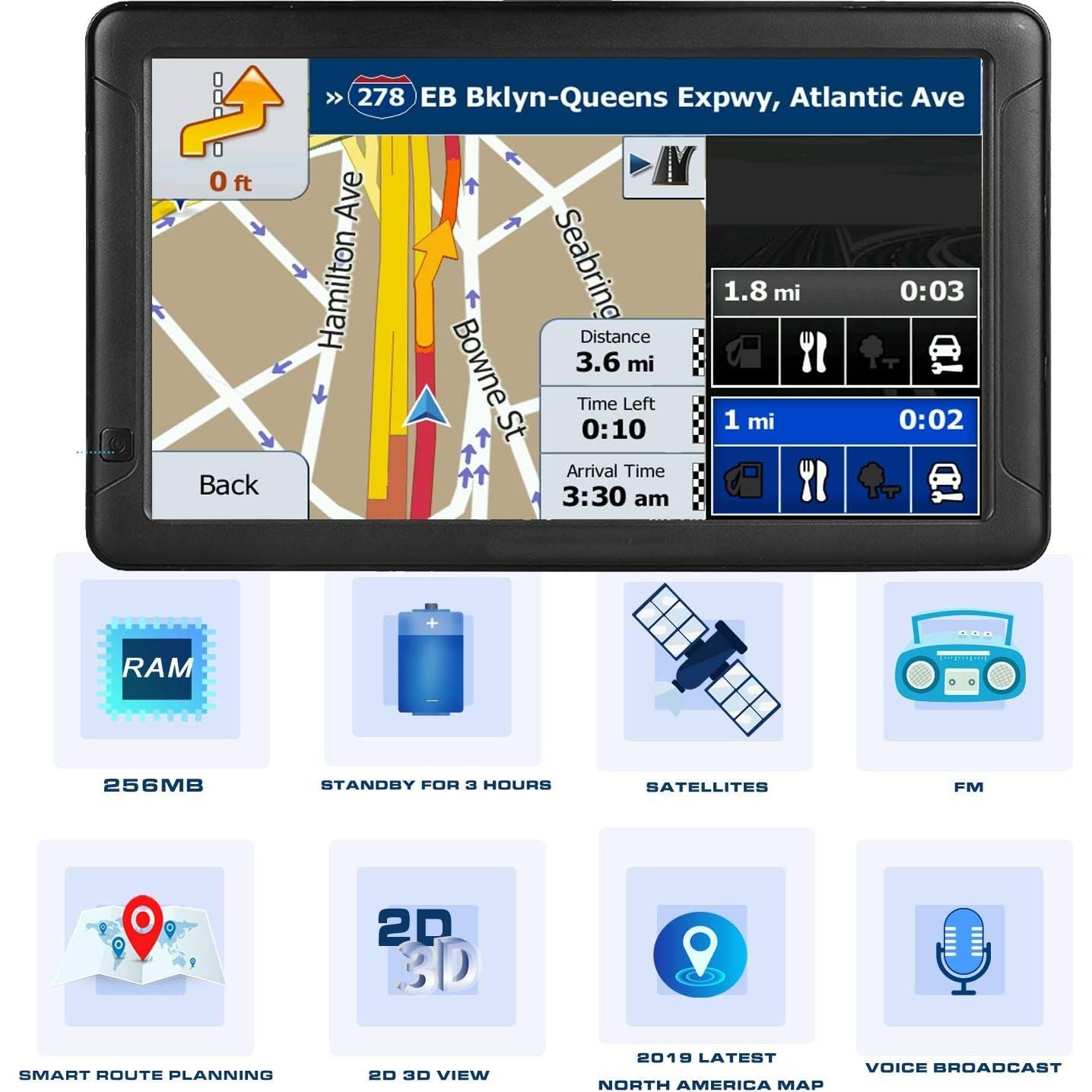 【REAL VOICE NAVIGATION】: Choose from a selection of voices that will provide you turn by turn voice navigation. Real man or woman voice broadcast you don’t have to look on the GPS screen all the time. It makes your driving safer, reduce fatigue driving, away from the ticket. Other Security Alert Types: Average Speed Camera, Red Light Camera ,Railway Crossing, High Accident Zone,City Entry Piont, Dangerous Area etc.