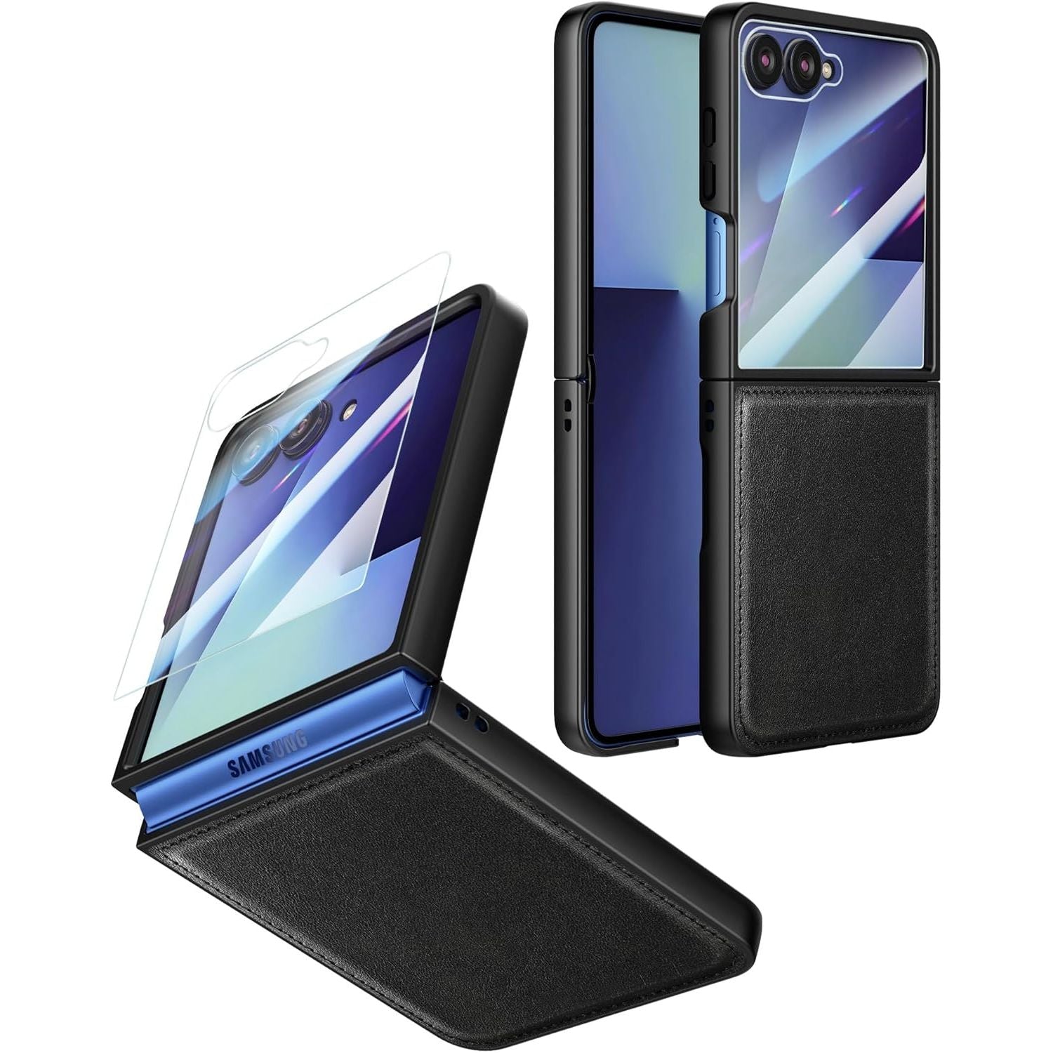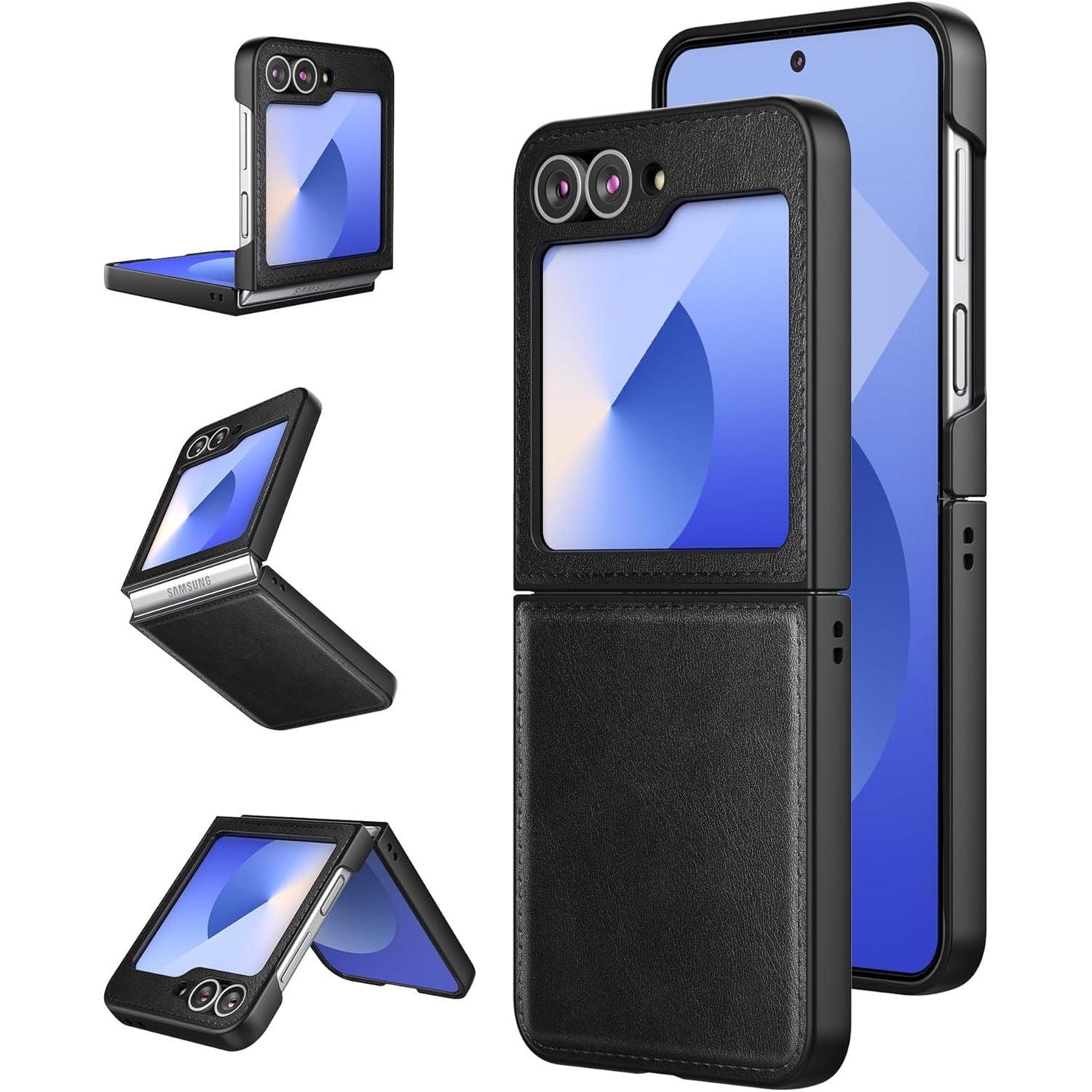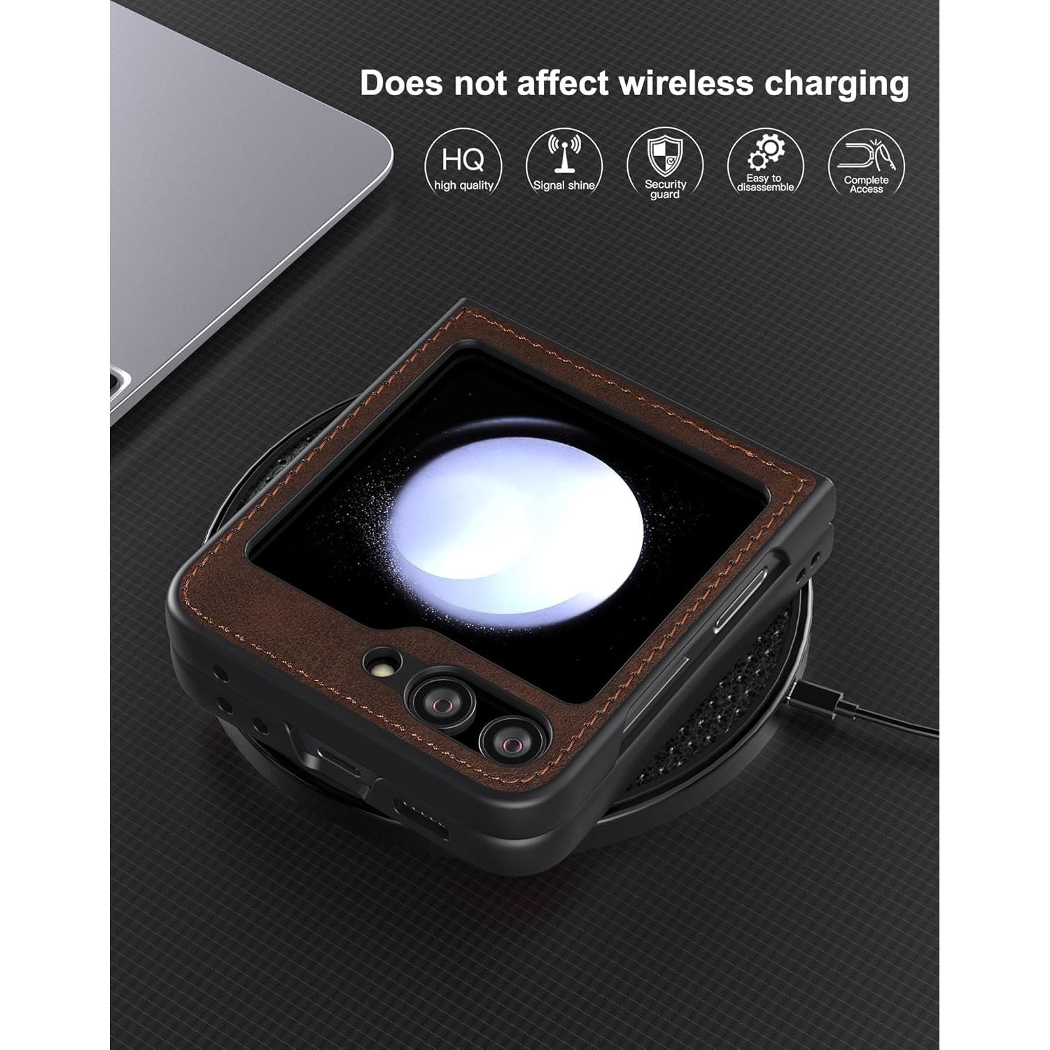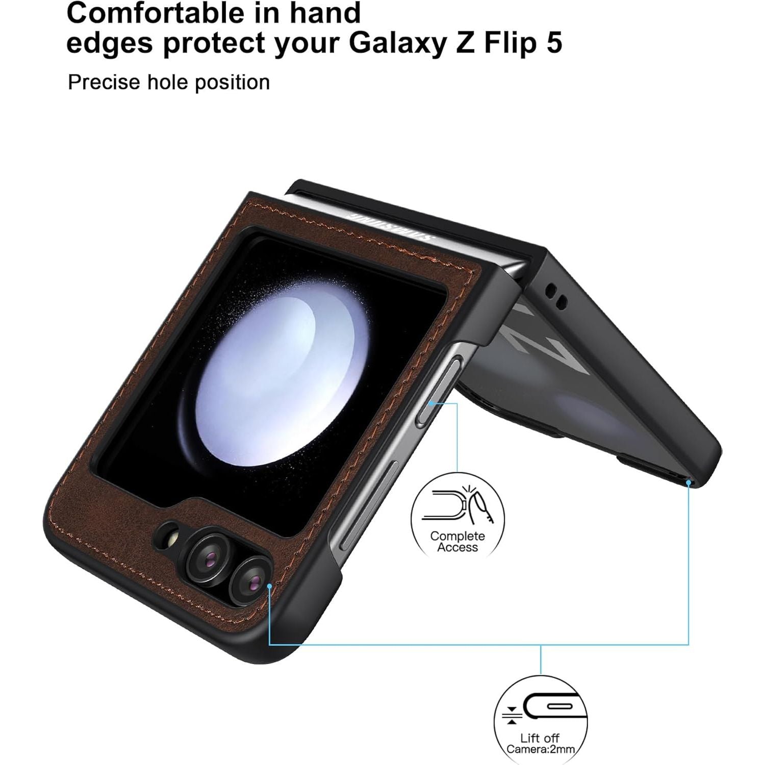 - 【DURABL PROTECTION】: Galaxy Z Flip 5 Leather Case is Made of Hard PC PU Leather Back. Classic PU synthetic leather back case stylishly provides an elegant and fashion look and feel. Good quality and great looking case.