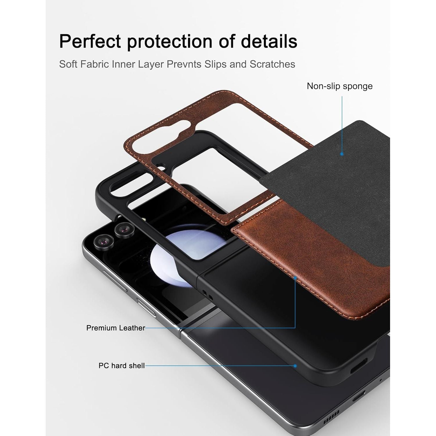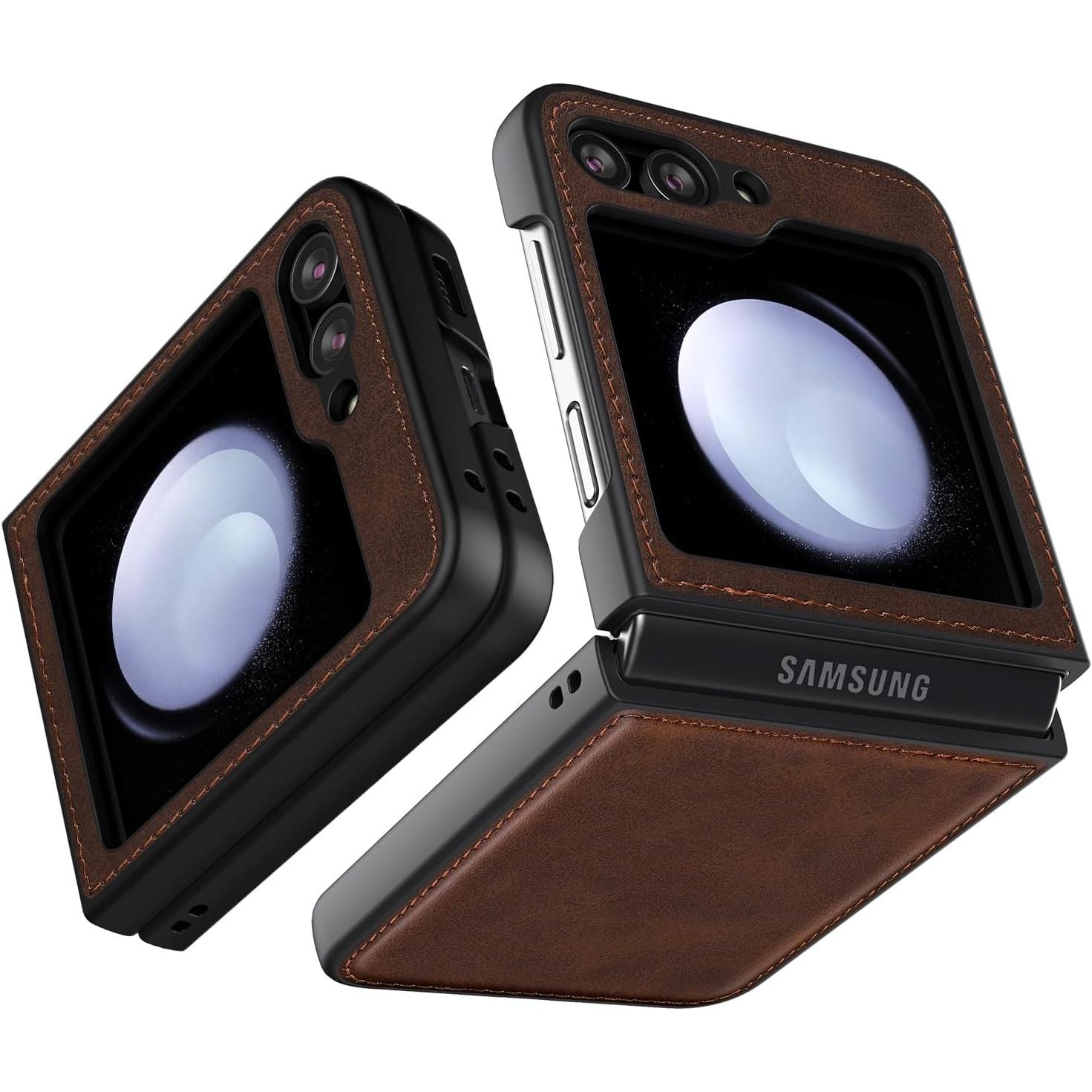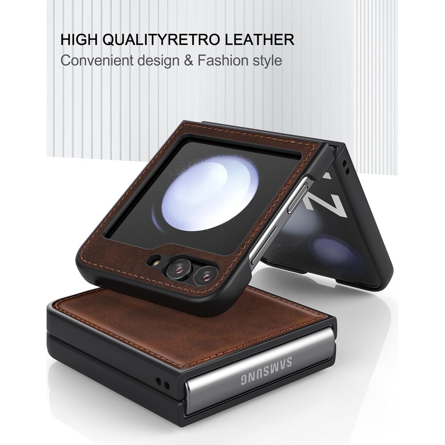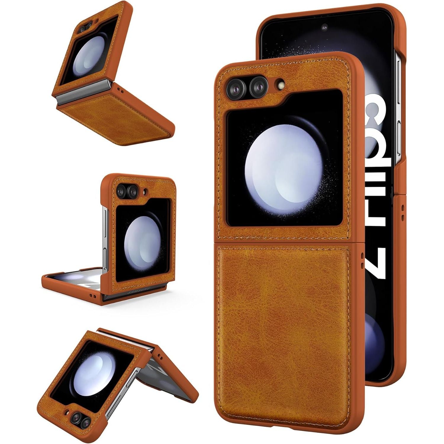 - Foluu for Samsung Galaxy Z Flip 5 5G Case, Leather Case, PU Leather + Hard PC Shell Ultra Thin Slim Durable Protective Phone Case Cover for Samsung Galaxy Z Flip5 5G 2023 (Brown)