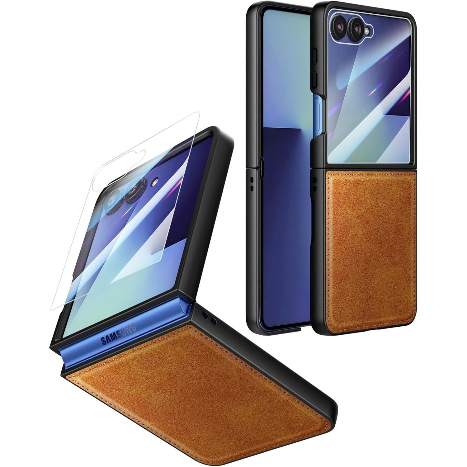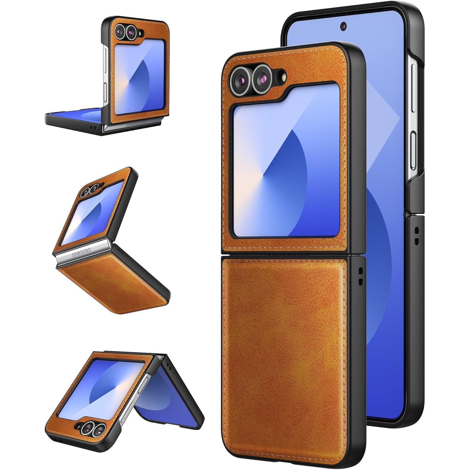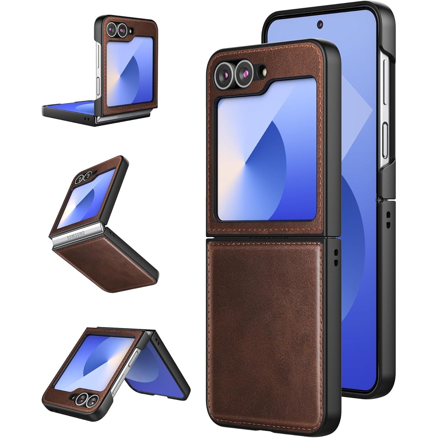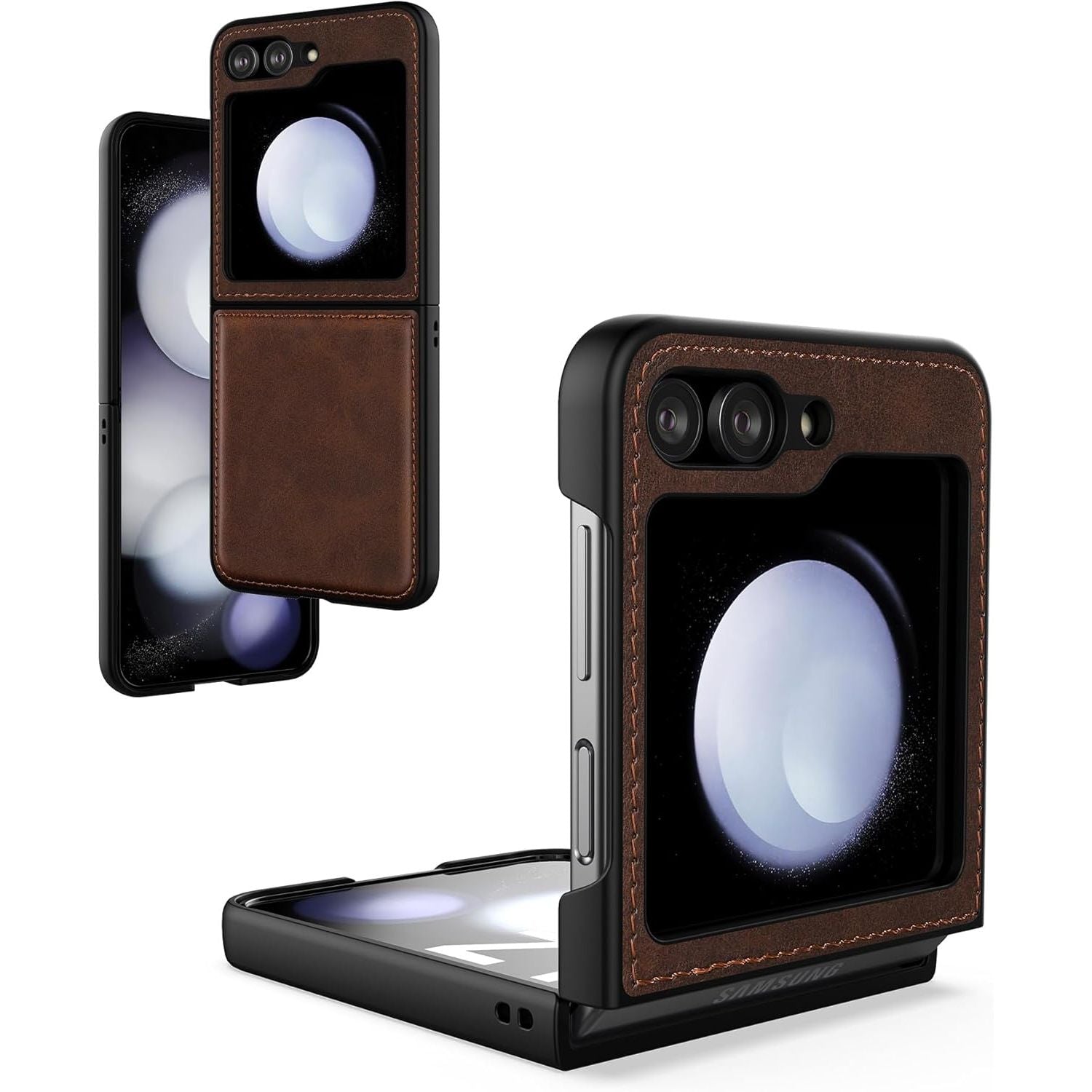 - Foluu for Samsung Galaxy Z Flip 5 5G Case, Leather Case, PU Leather + Hard PC Shell Ultra Thin Slim Durable Protective Phone Case Cover for Samsung Galaxy Z Flip5 5G 2023 (Brown)