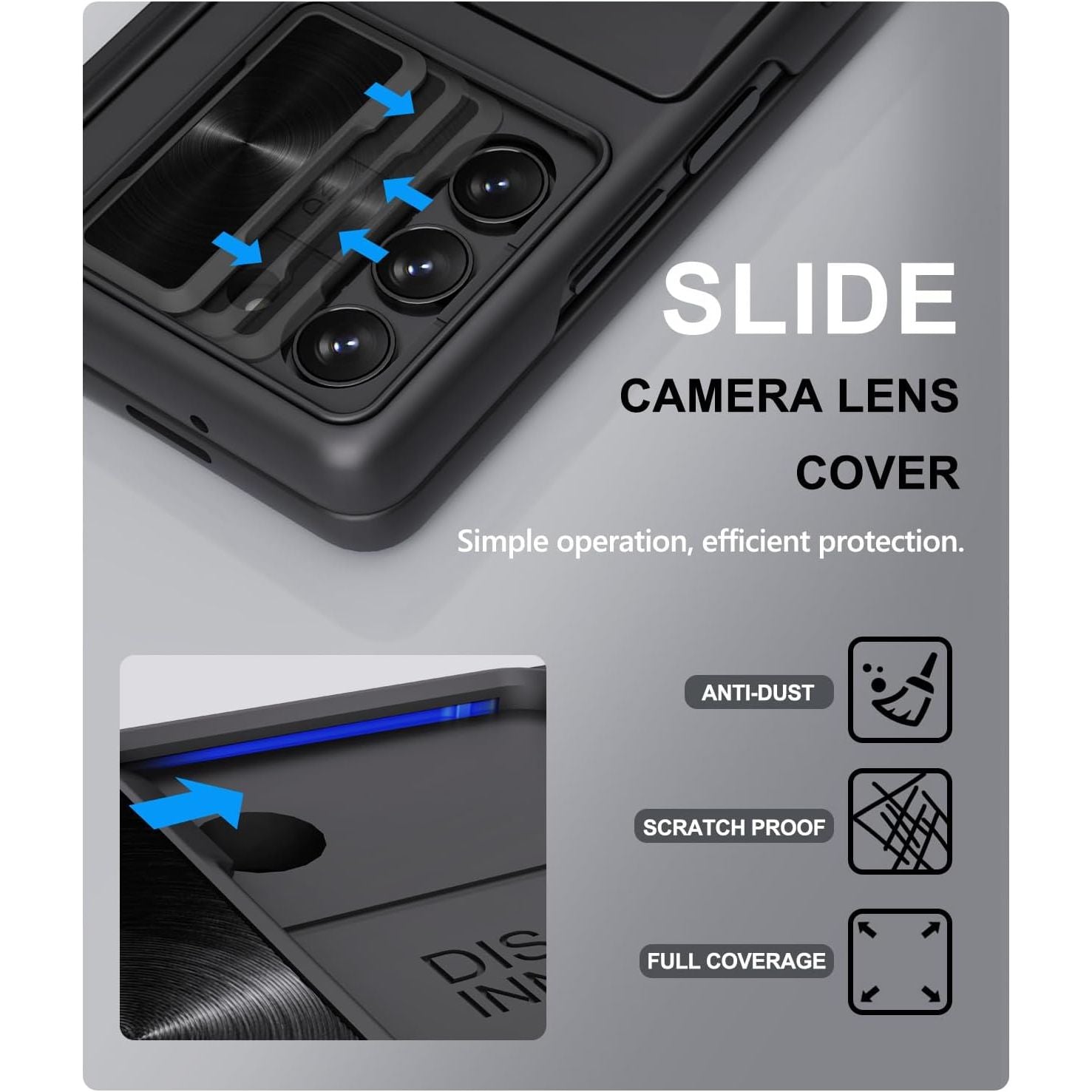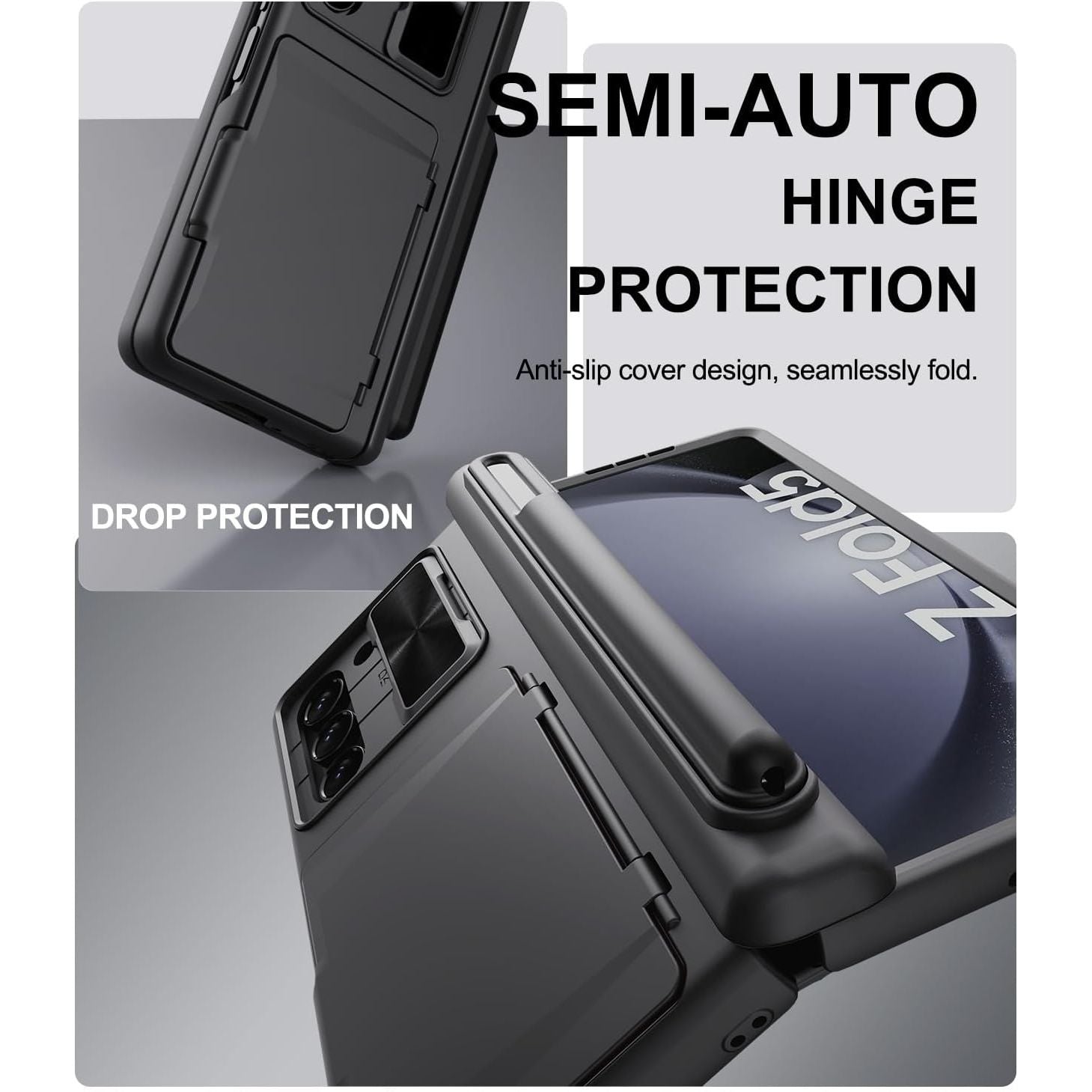 - ✅[Dual Layer Camera Protection] Our case for Galaxy Z Fold 5 with built-in siding camera lens cover. Unique camera slide cover design to hide the camera perfectly, which not only increases safety but also has a sense of technology. When the lens is not in use, easily slide our professionally designed Samsung Z Fold 5 phone case lens protector. 2mm raised bezel, which effectively prevents your camera screen from cracks and scratches.