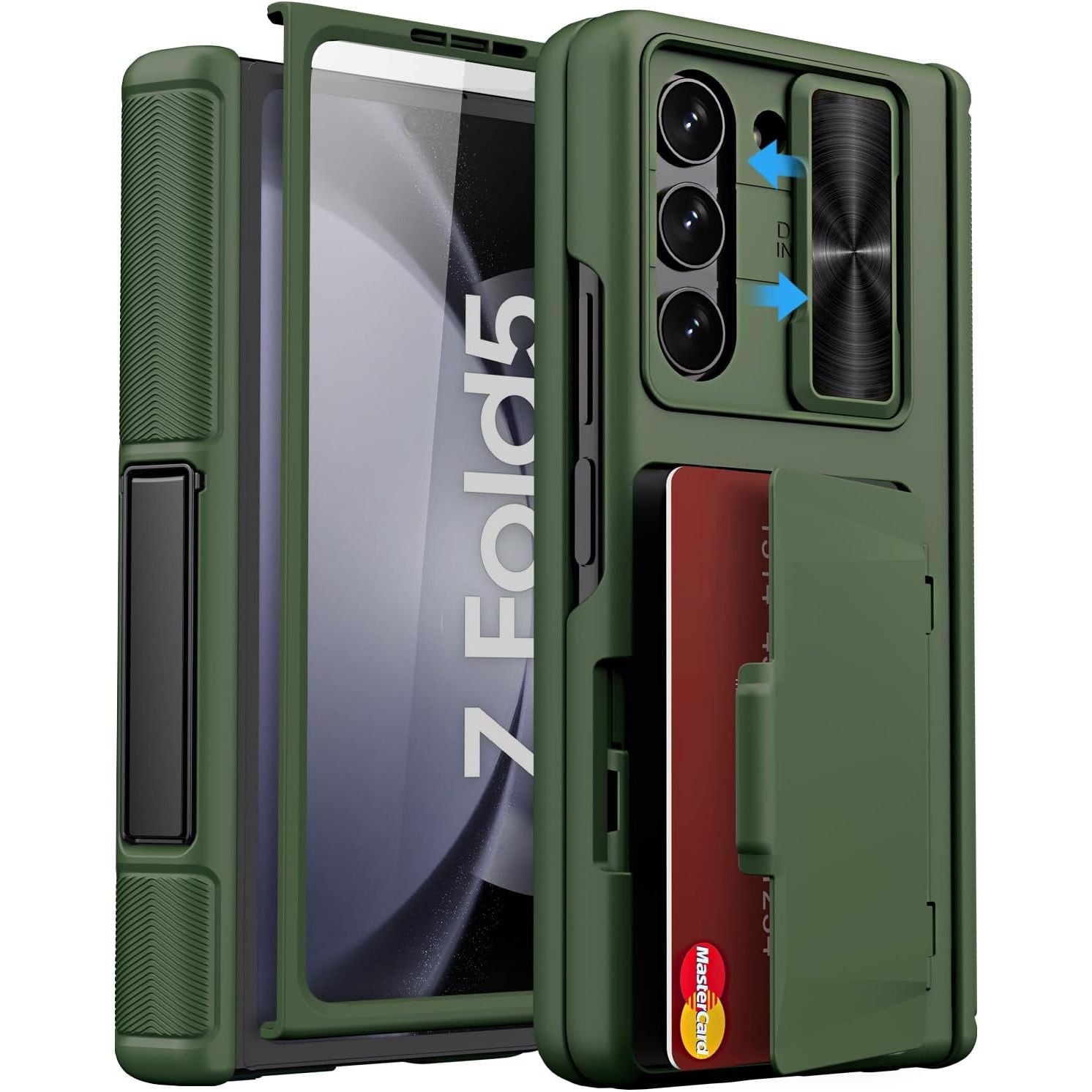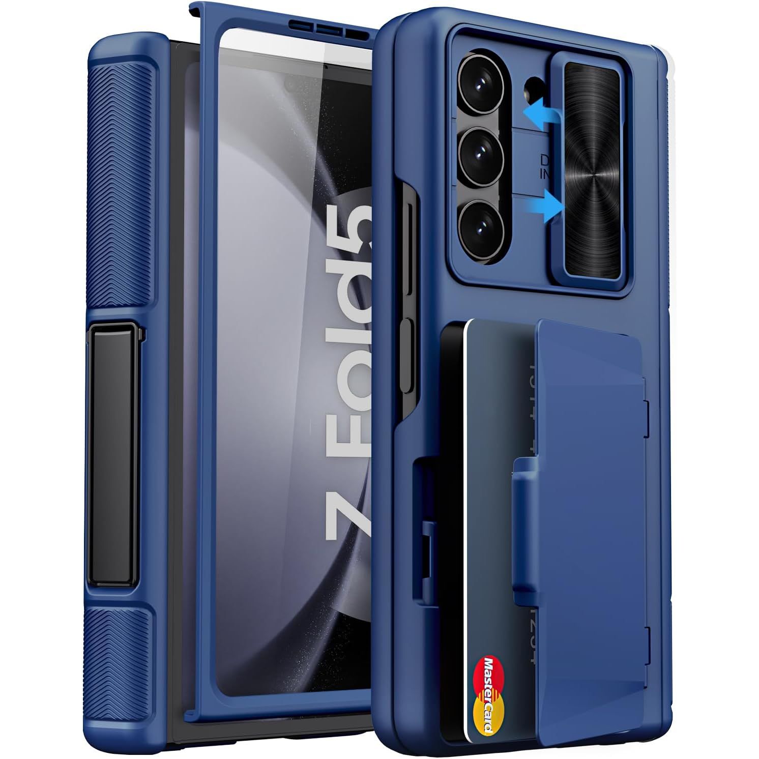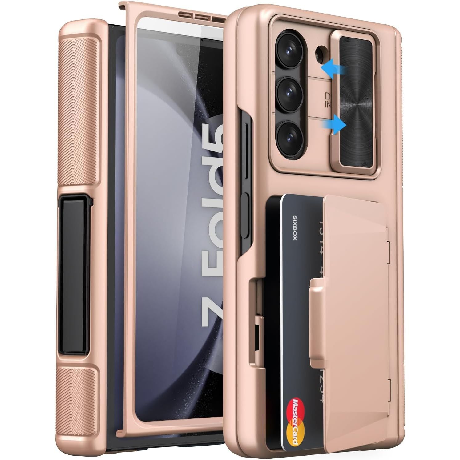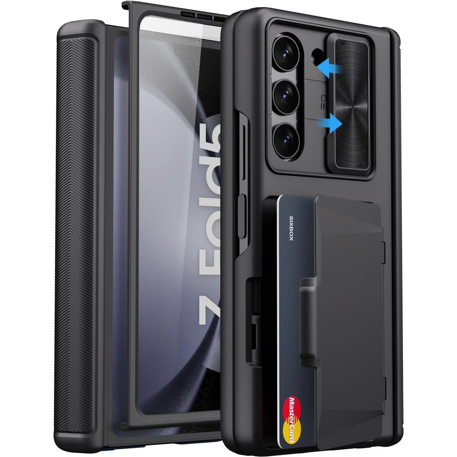 - for Samsung Galaxy Z Fold 5 Case with Card Holder & S Pen Holder & Slide Lens Cover, Built-in Hinge Protection & Screen Protector, Durable Sturdy Phone Cover Case for Galaxy Z Fold 5, Black