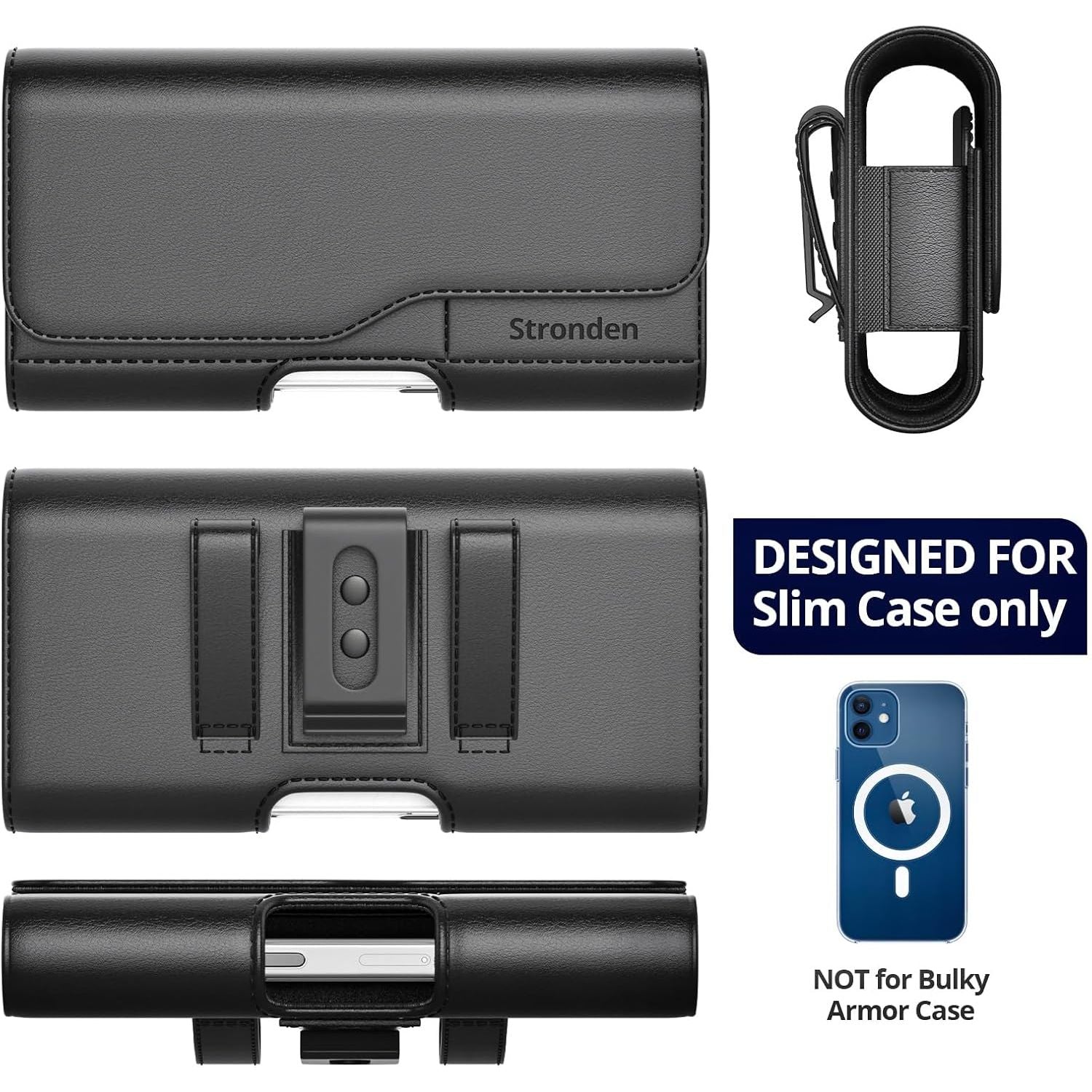 - Holster Precisely Designed for iPhone 17 Pro, 17, 16, 16 Pro, 16e, 15, 15 Pro, 14 , 14 Pro, 13, 13 Pro, 12, 12 Pro, 11, XR With Slim or Regular Case On. ( Holster WIll NOT Fit Otterbox Defender Series or Bulky Armor Case On)
