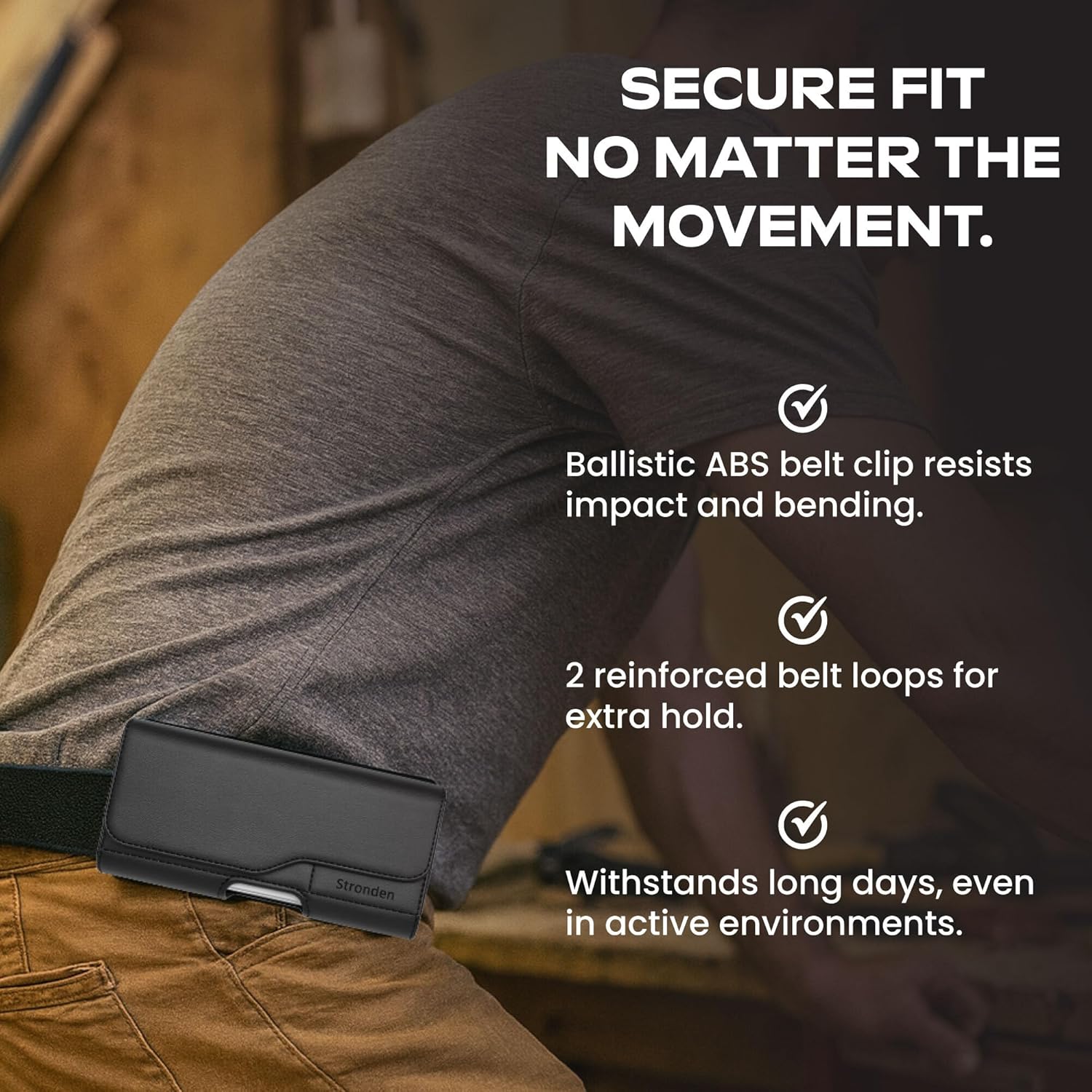 Have a peace of mind that this holster is there to support your work. Whether your driving a vehicle, exiting your truck or moving stuff, Be assured your phone is secured & available.