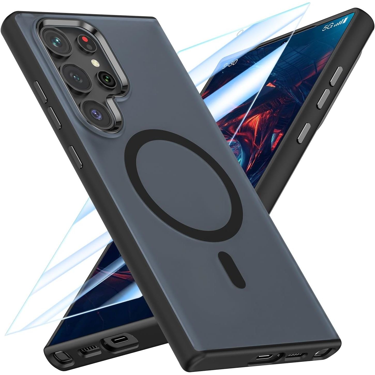 - MATEPROX Magnetic Design for Samsung Galaxy S24 Ultra Case, Stylish Slim an-ti Yellow Translucent Matte Shockproof Protective Cover for S 24 Ultra 6.8'' 2024-Titanium Gray