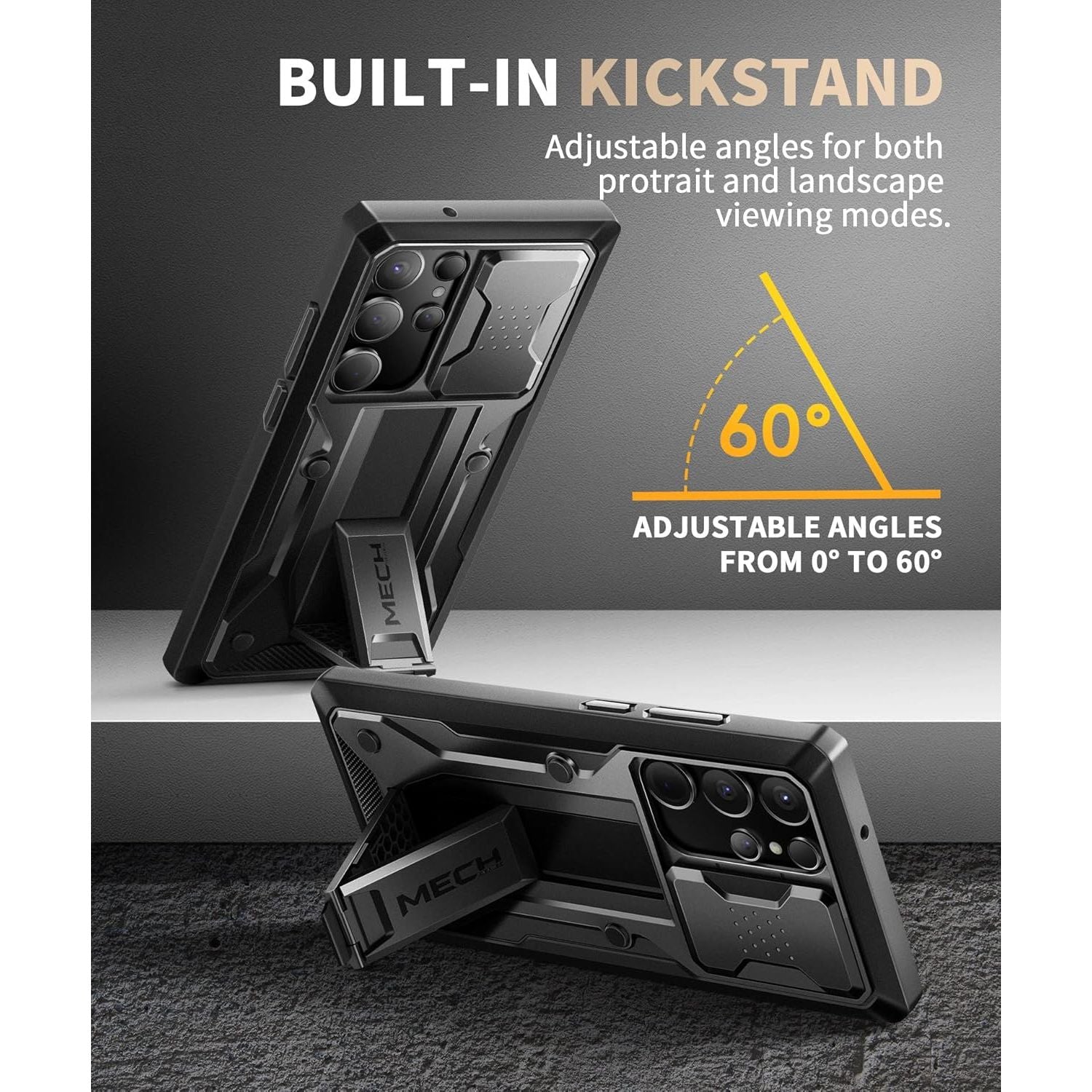 - [Built-in Folding Stand] The samsung S23 ultra case comes with a sturdy built-in foldable stand that you can use in either portrait or landscape mode depending on your needs. The hidden kickstand will not be obtrusive. Flexible and strong stand holder to help you adapt to study, life, work and other applications