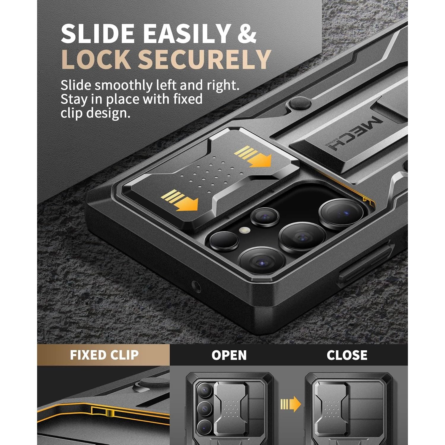 - [Slide Camera Protection] Tongate Samsung Galaxy S23 Ultra case features a new and upgraded slide camera lens cover design that using a double-recessed rail for smooth sliding without snagging. There are fixed locks on both sides to ensure that cannot slide randomly and protect your privacy. 2mm raised camera slider to protect your camera lens from scratches, bumps, shocks