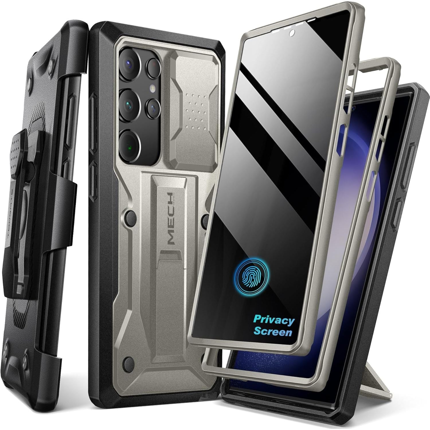 | whats in the box | 1 * S23 Ultra Case with Slide Camera Cover & Stand 1 * Front Frame (Built-in Screen Protector) 1 * Front Frame (No Built-in Screen Protector) 1 * 360° Removable and Rotating Belt-Clip |