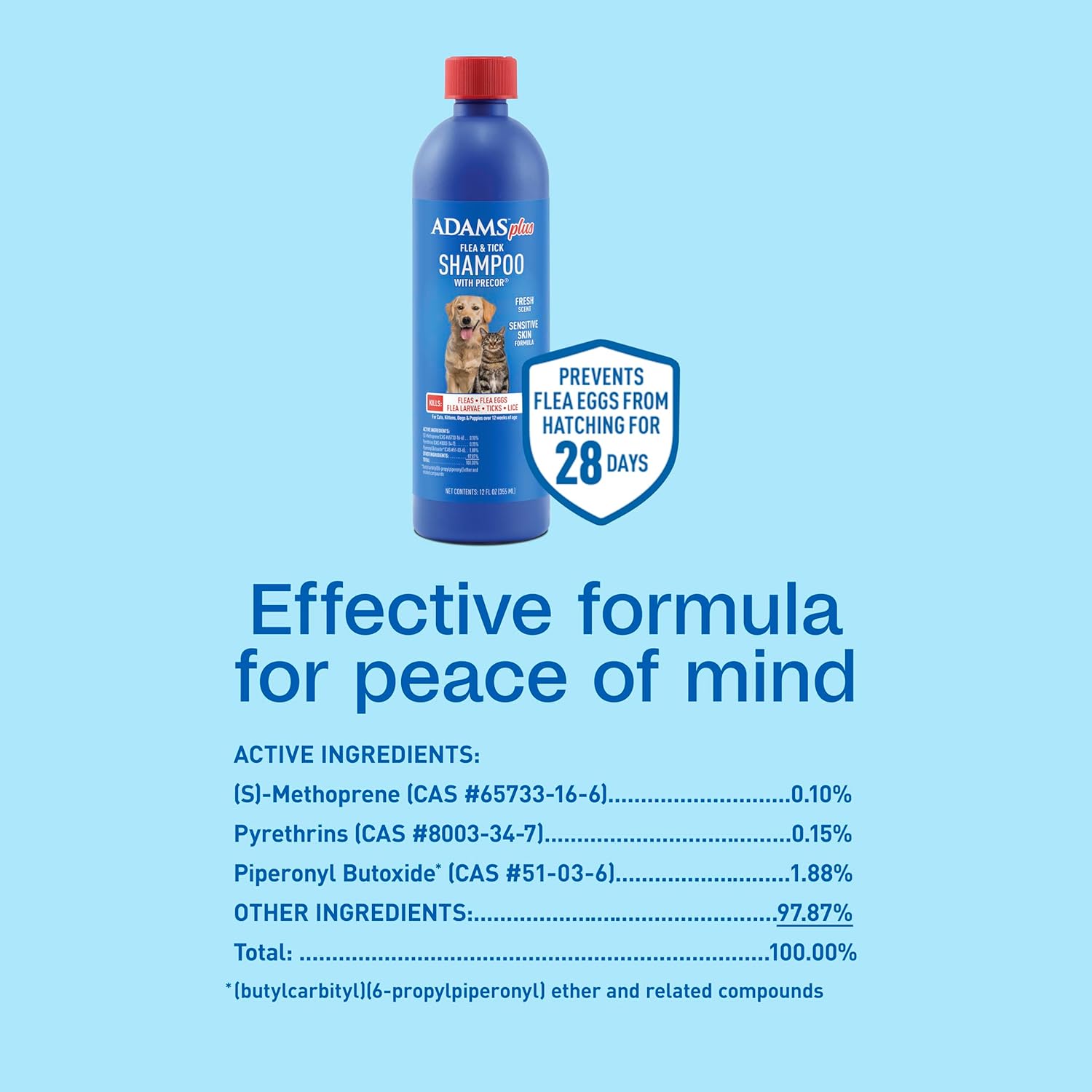 - A LITTLE GOES A LONG WAY: ADAMS Plus Flea & Tick Shampoo With Precor IGR is formulated to help with grooming; You only need to use about 4 teaspoons for every 5 lbs of pet’s weight
