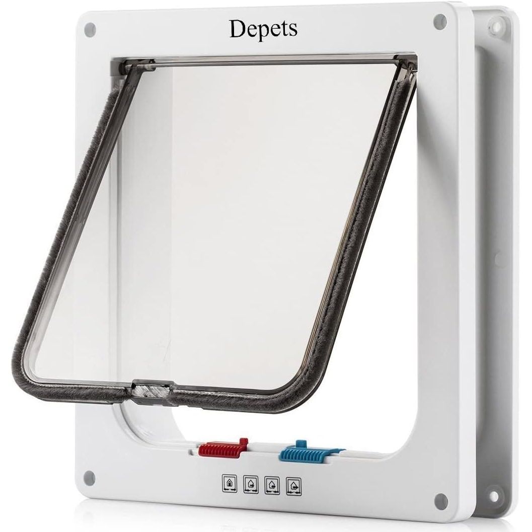 Depets Medium Cat Flap Door with 4 Way Lock (Outer Size 7.5" x 7.8"), Magnetic Pet Door Kit White, Weather-Resistant Cat Door for Cats & Doggy