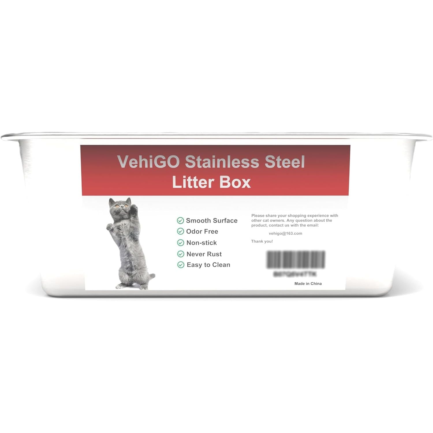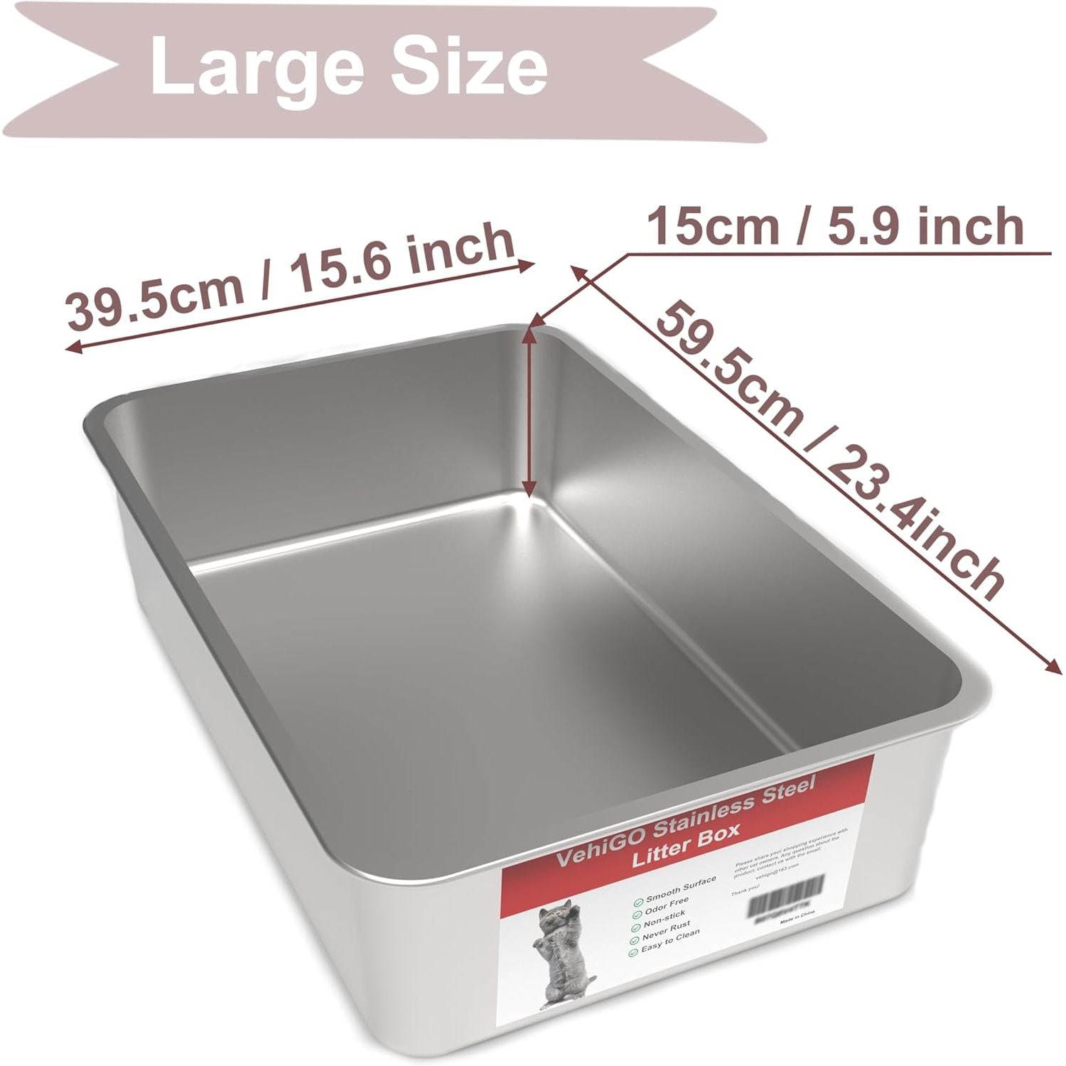 - Durable Metal: VehiGo cat litter pan is made of stainless steel, then it is durable, long lasting, never rust and will not be broken.