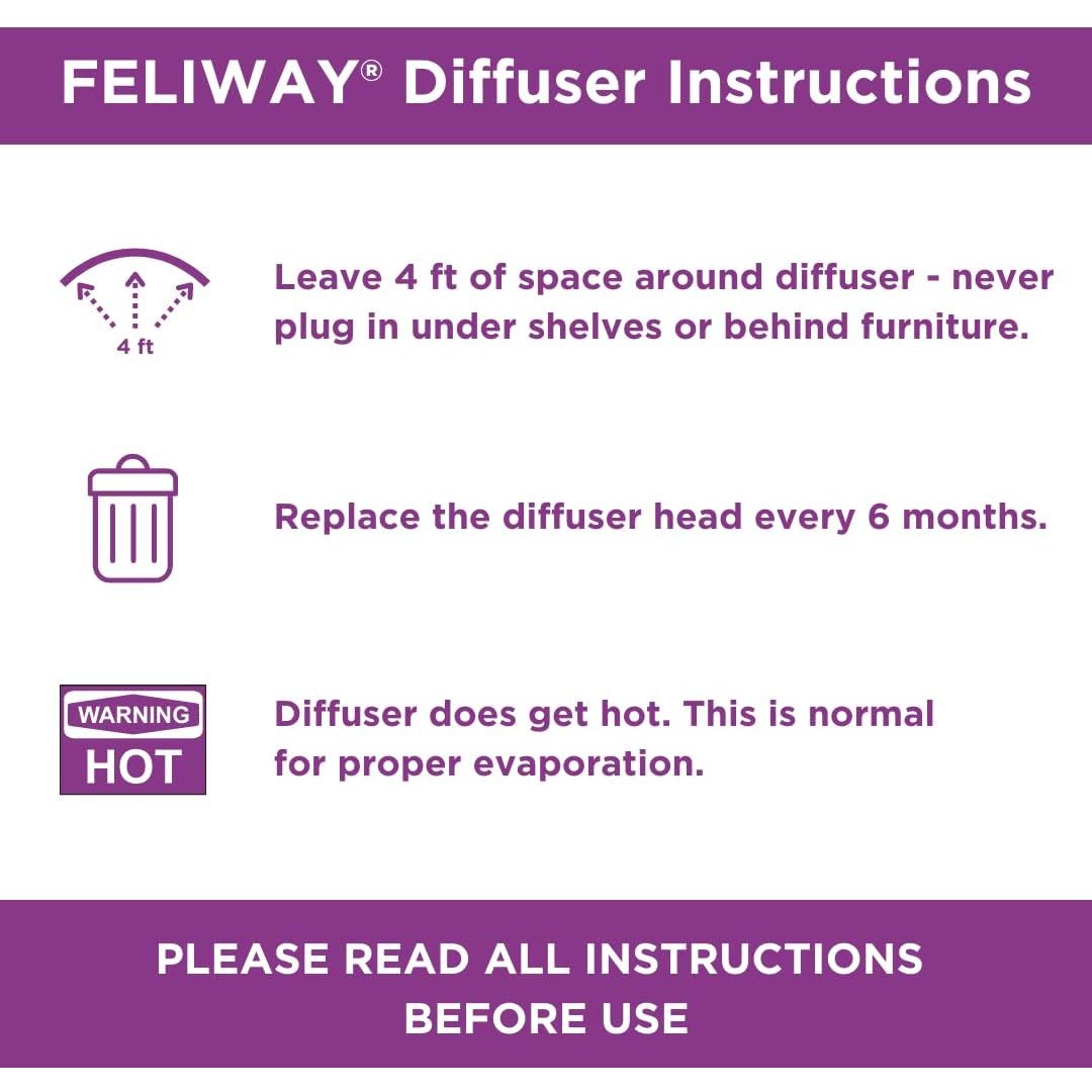- DRUG FREE & SAFE TO USE: FELIWAY diffusers are drug-free, non-sedating, and while cat pheromone analogs may help your cat, they won't affect humans or other pets