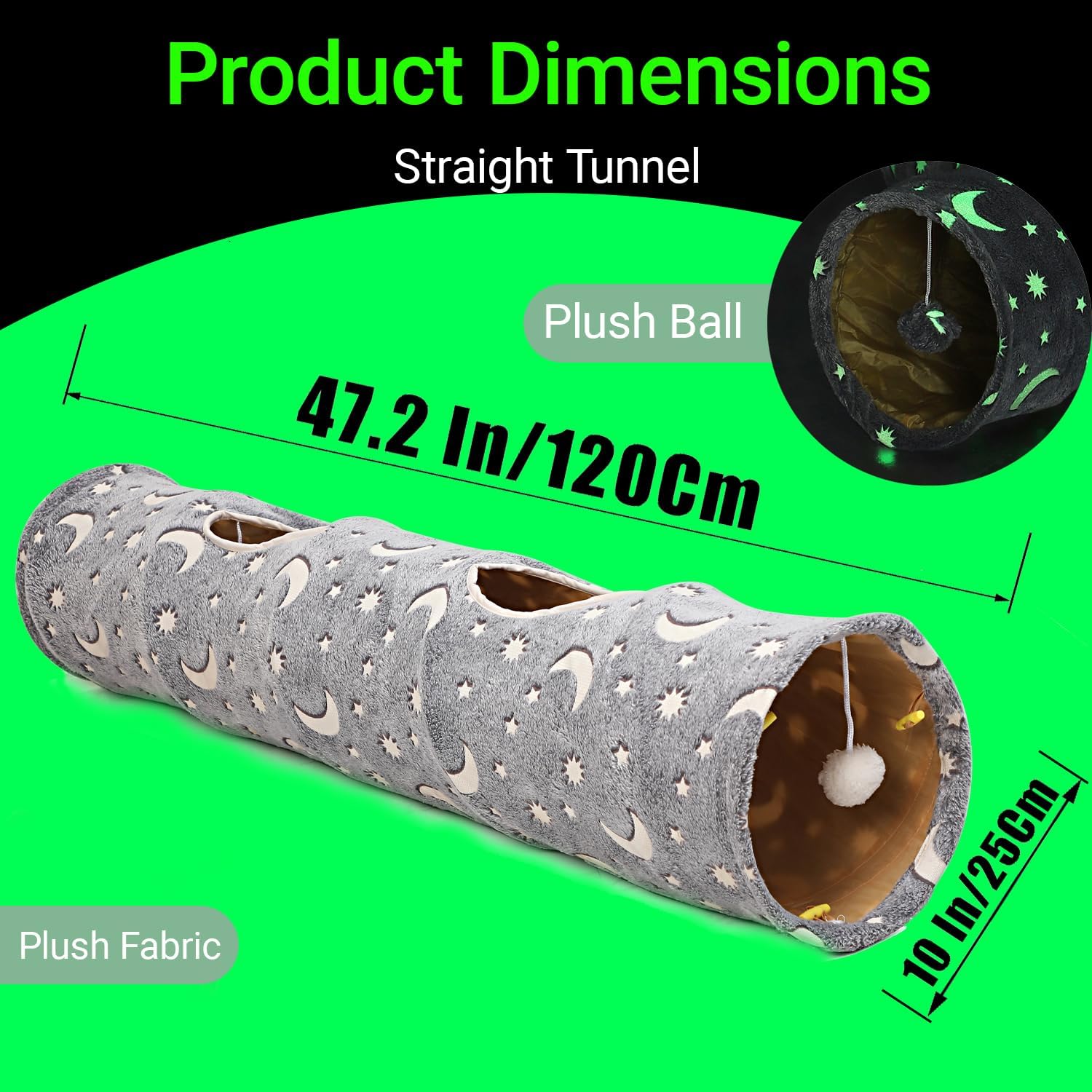 - ★Glows In The Dark: Expose the tunnel to natural sunlight,lamplight and watch the magic happen. It will glow for approximately 3-5 Hours.