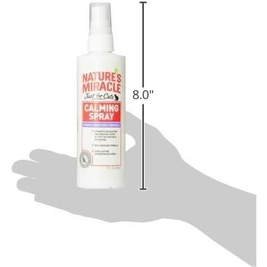 Nature's Miracle Just for Cats No Stress Calming Spray works to reduce your cat's anxiety and keep them calm in stressful situations. This concentrated, long-lasting formula is non-sedating and contains soothing scents that promote relaxation and reduced hyperactivity. Directions - Spray Nature's Miracle Calming Spray wherever cat spends time when stressed and on carriers when transporting cat. Not intended to be sprayed directly on cat. Caution : Do not spray in cat's eyes and avoid spraying into open wounds. Contact with eyes or open wounds is not dangerous but will cause irritation. In case of contact with eyes or wounds, rinse affected area with water. KEEP OUT OF REACH OF CHILDREN.