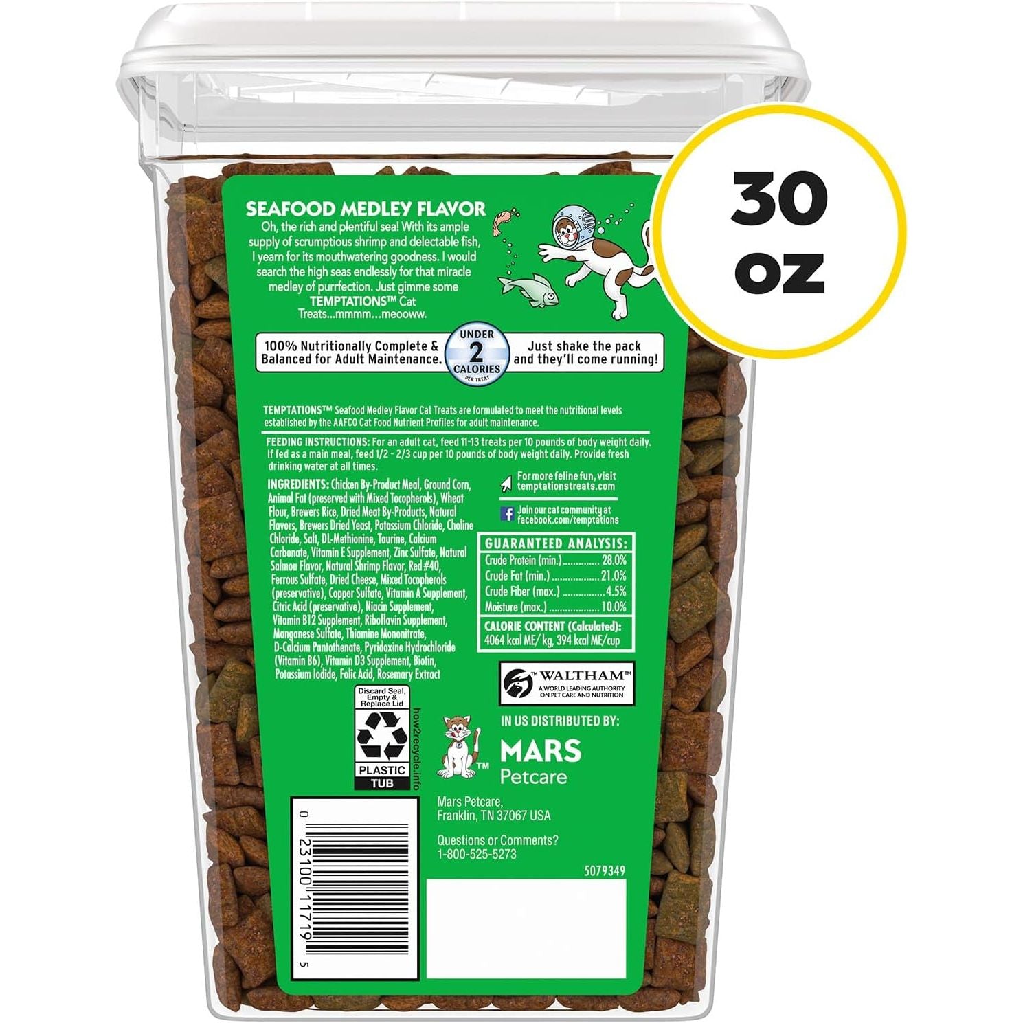 Temptations Classic Crunchy and Soft Cat Treats, Seafood Medley Flavor, 30 oz. Tub