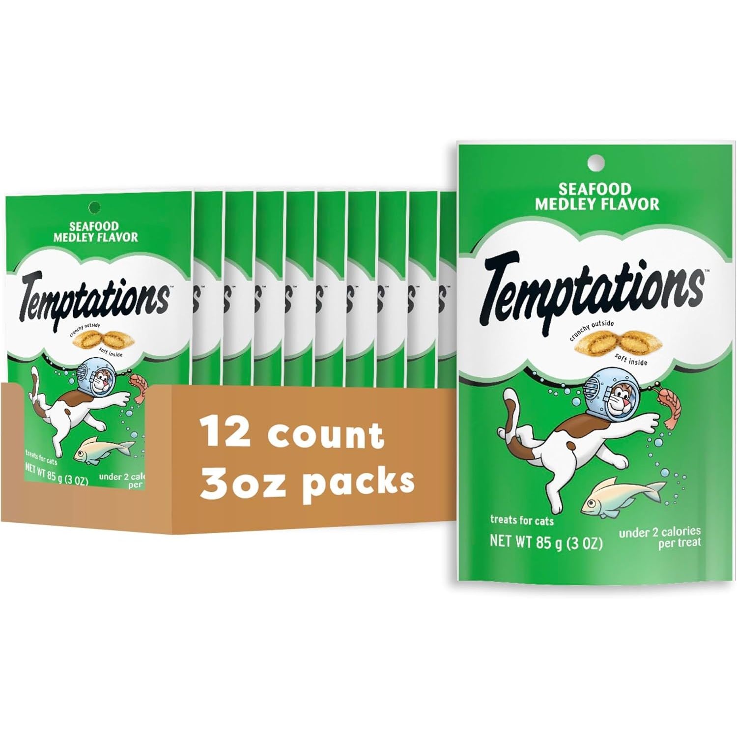 Cats love the delicious, crunchy taste of Temptations cat treats, so give your cat purr-worthy Temptations Classic Crunchy and Soft Cat Treats Seafood Medley Flavor, and they’ll come running the moment you open the pack. Each of these seafood-flavored cat treats has less than 2 calories and provides an irresistible combination of both crunchy and soft textures. They also come in a stay-fresh tub, so your feline friend can enjoy their favorite cat snacks when you open it, but not when they shouldn’t! These Temptations Classic Cat Treats are a perfect addition to your cat’s regular feeding routine: Use them as cat treats, meals, or as cat food toppers. Temptations Classic Crunchy and Soft Cat Treats are the purr-fect way to show your feline friend how much you care.