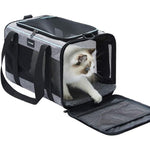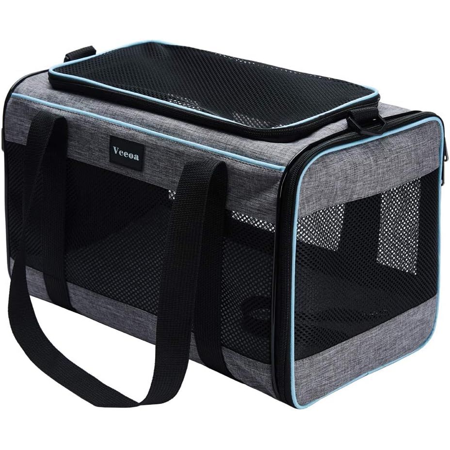 - Mesh windows for ventilation, top and side entry with locking zippers for safety. Carrying handles, adjustable shoulder strap which can also be used as seatbelt, and back strap can fasten the pet carrier to your luggage.