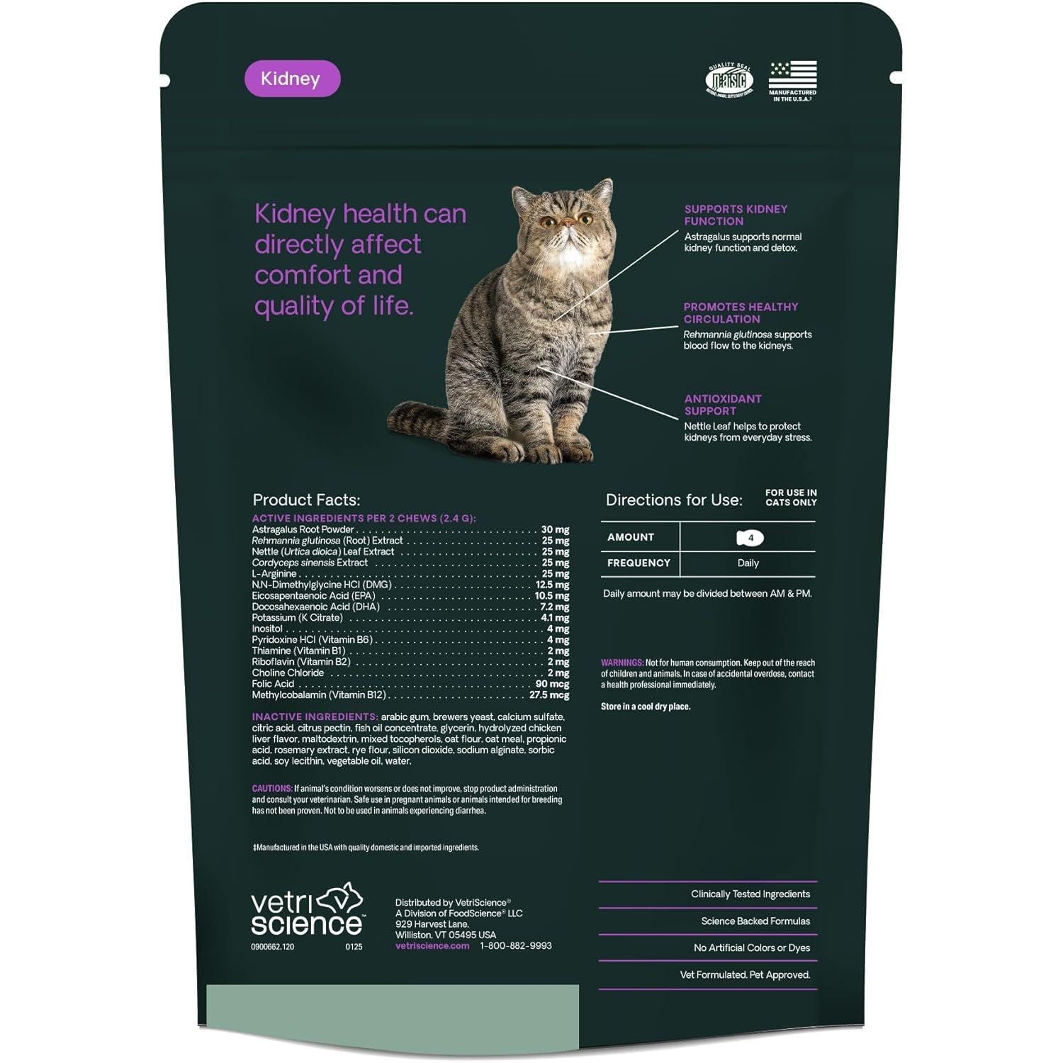 VetriScience Kidney Health Chews, Renal Essentials Supplement for Cats, Kidney Care and Support with Mushroom, Astragalus Root, Nettle Seed and Herbs, Chicken, 120 Count