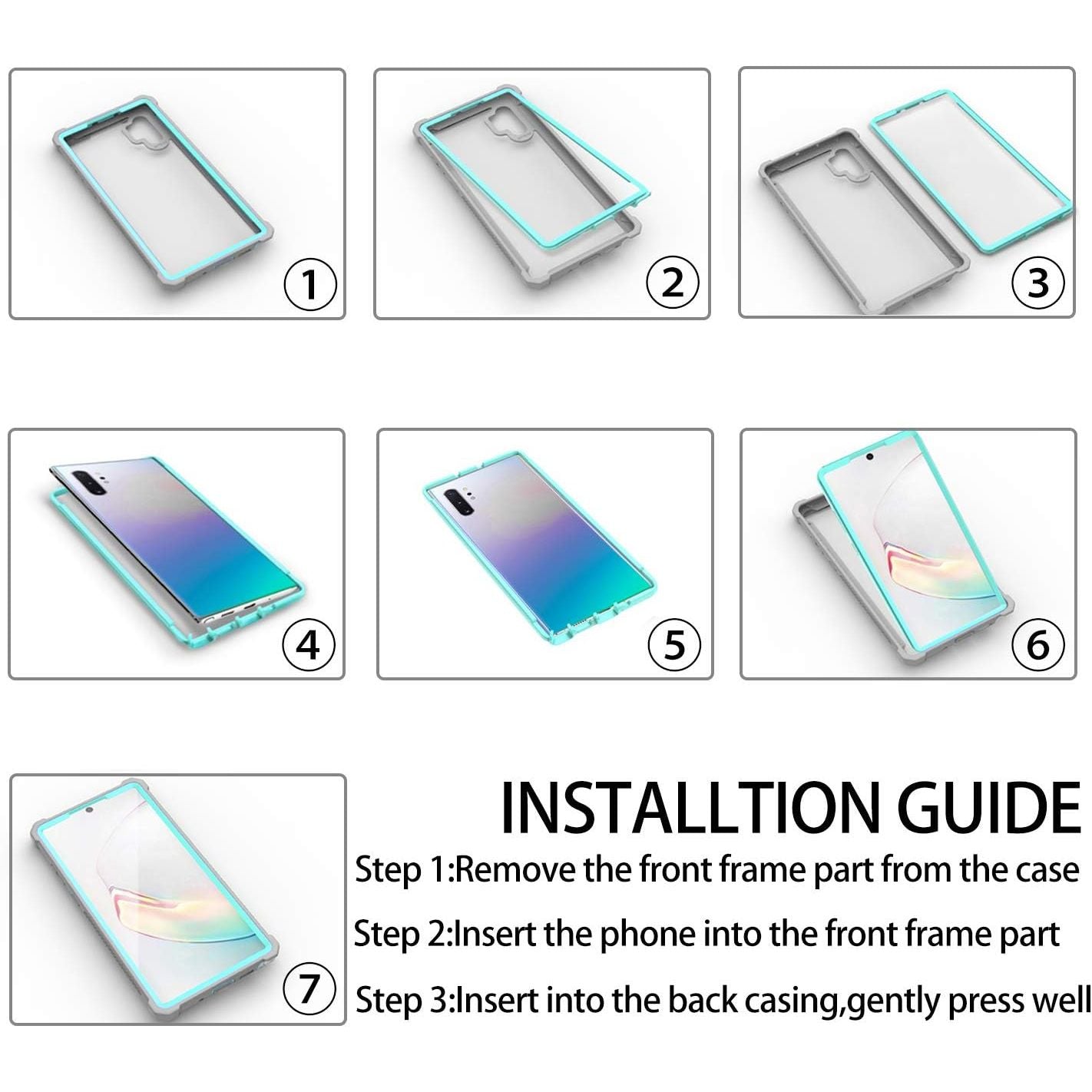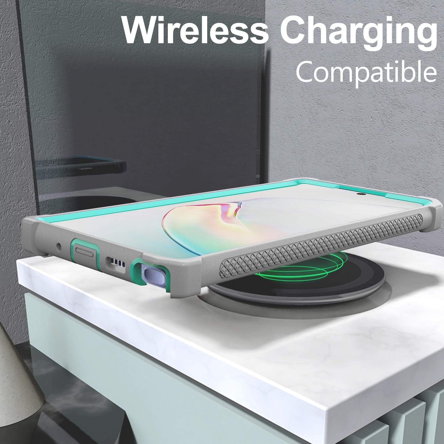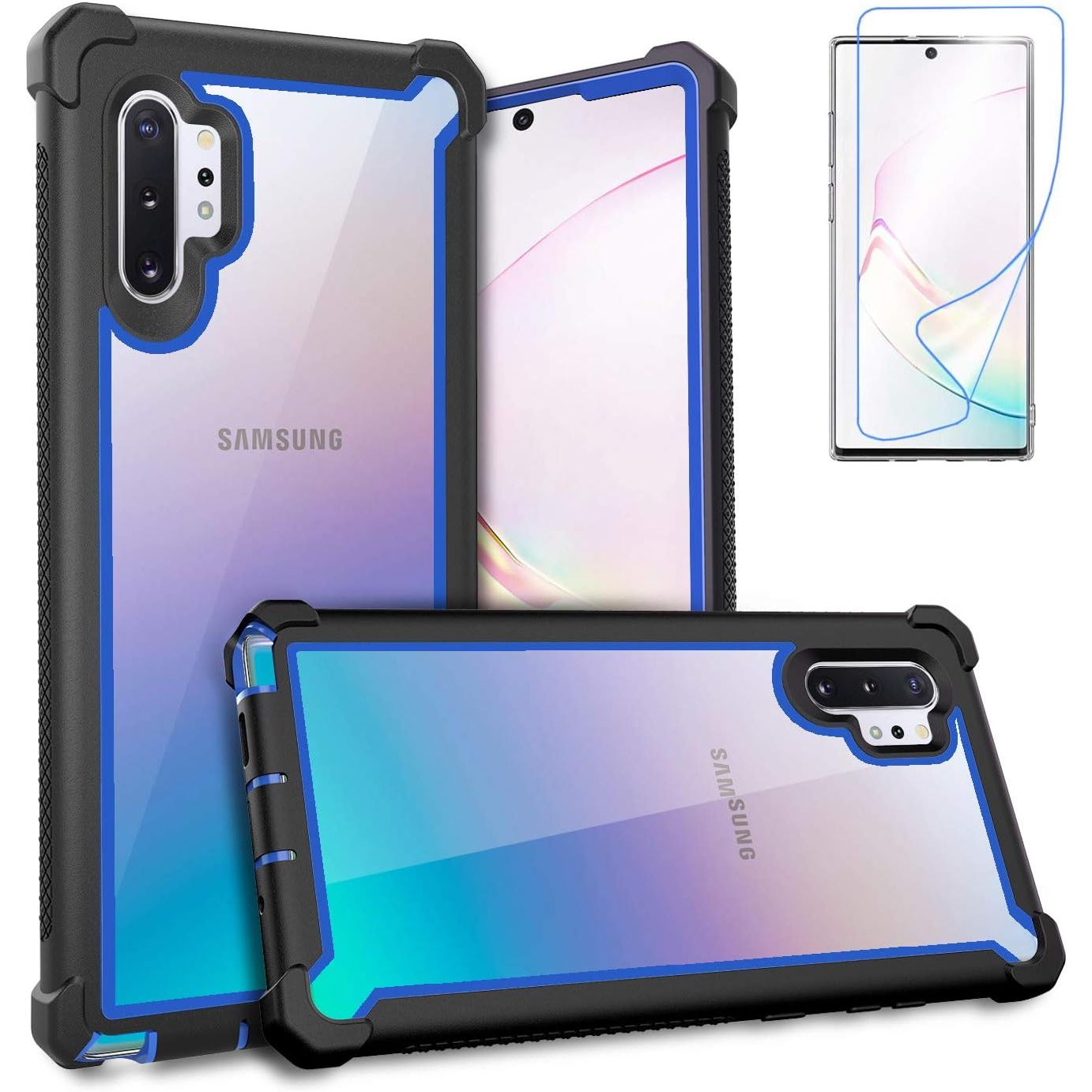 - Hybrid Dual-Layer Full-Body Case for Galaxy Note 10 Plus 5G 6.8" with Screen Protector (Gray Light Blue)