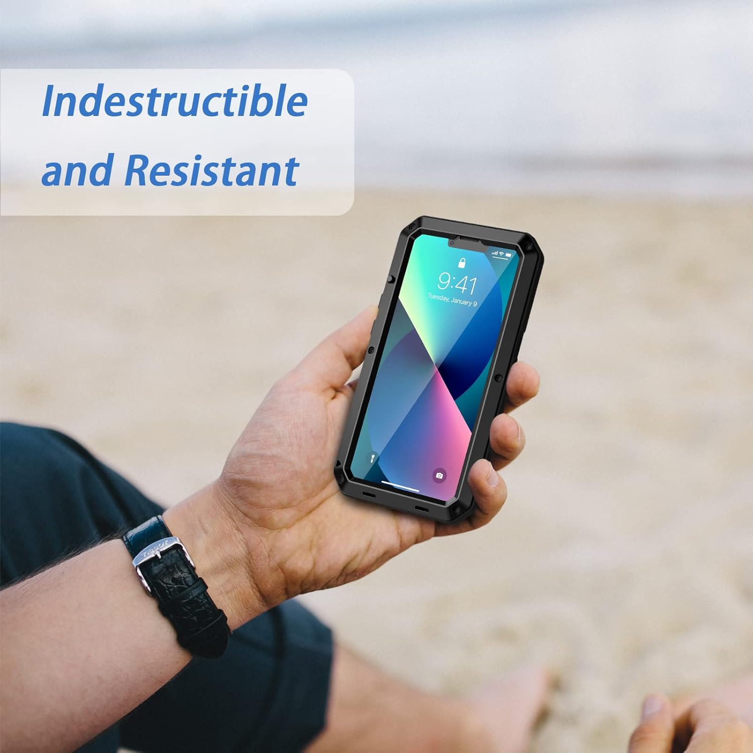The All New Metal Case with Screen Protector for Apple iPhone 13 (6.1 inch) release is a stylish, form fitting protective Shield with a smooth finish. The enhanced design reveals a Aluminum back, shock absorbing frame. The perfect minimalist case. Scratch-proof Specialized reinforced-otter soft coating design offers long-lasting protection from scratches and scrapes. Raised Profile Elevated front bezel wraps around the corners and edges, which keeps your screen from scratches when facing down. Easy Response Buttons Recessed button finish covers your power and volume buttons, protecting with easier and precise using experience.