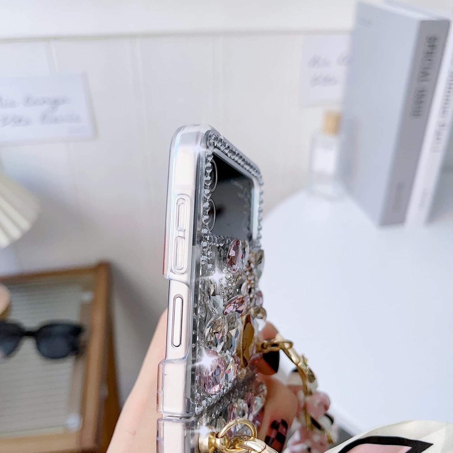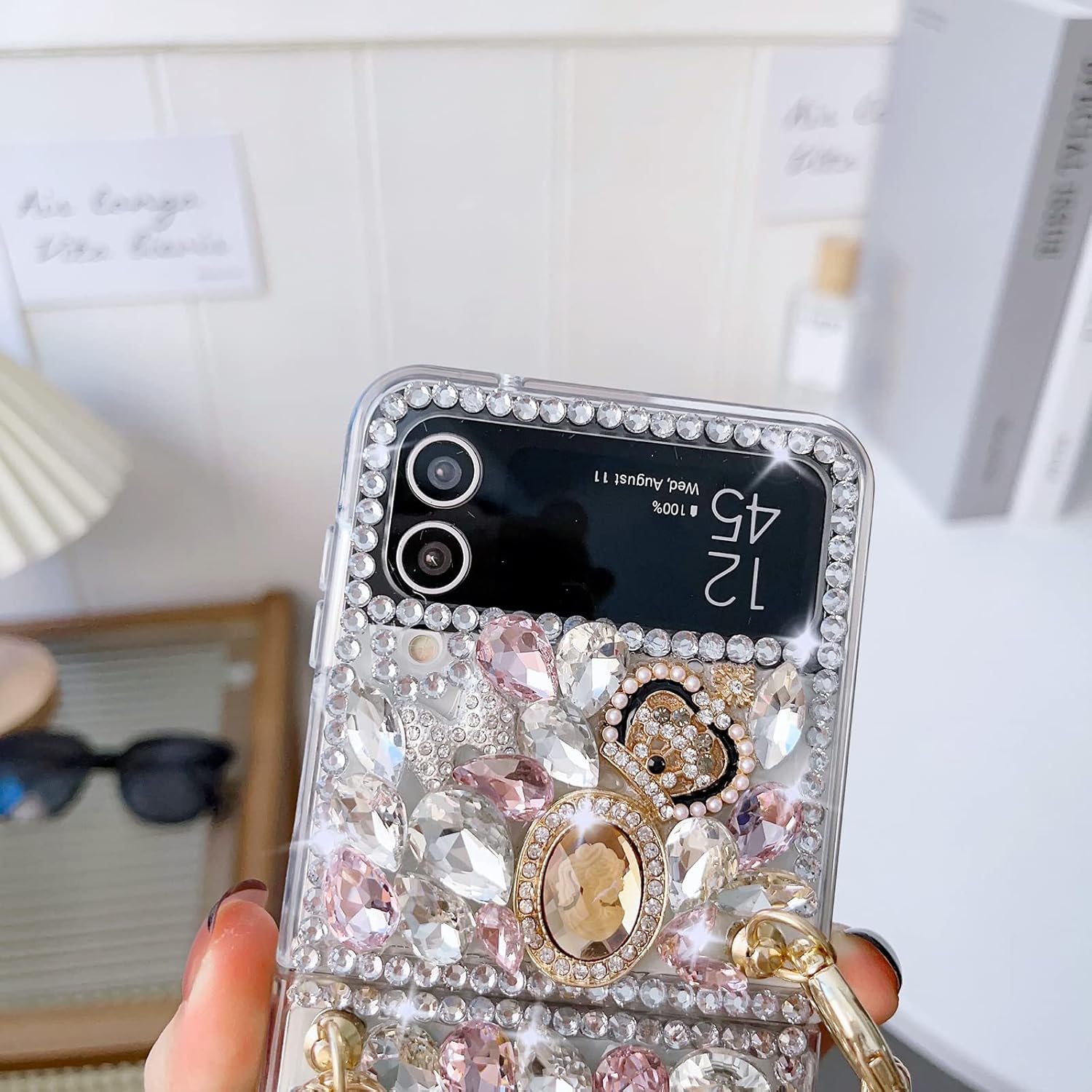 - [Cute Case for Samsung Galaxy Z Flip 4] New designed luxury bling crystal diamond with strap only compatible with Samsung Galaxy Z Flip 4 5G. Please make sure your phone model is Samsung Galaxy Z Flip 4 before buying. If you have bought it by mistake, please contact the Amazon customer service team for help. Any other issues please feel free to write to us at the first time. We will fix it for you with 24 hours.