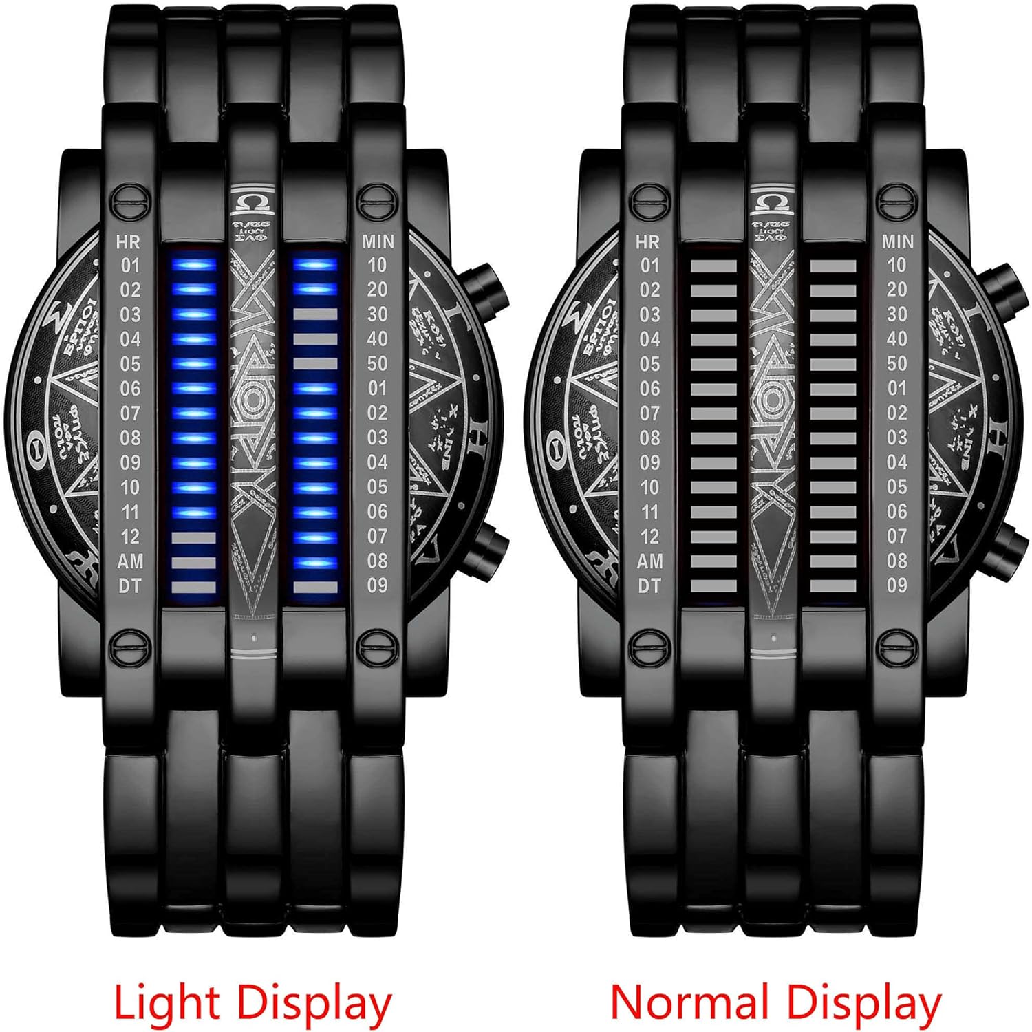 - Fashionable design: Creative binary time mode dispaly, double open stainless steel buckles, wear more convenient and solid, best gifts for men, father, boyfriend, husband etc