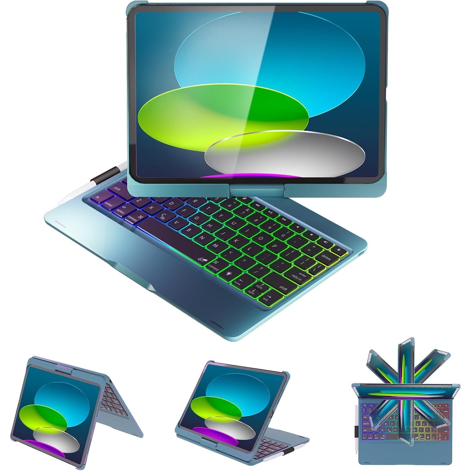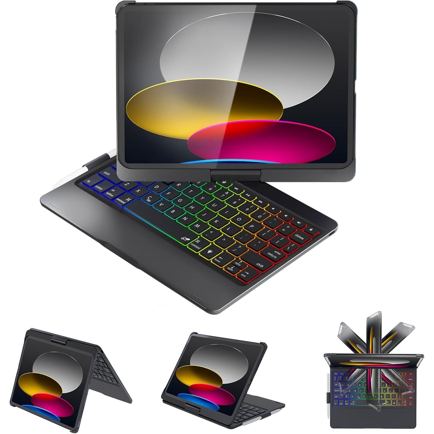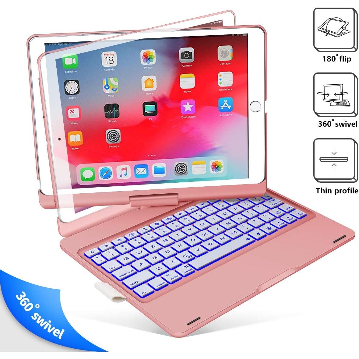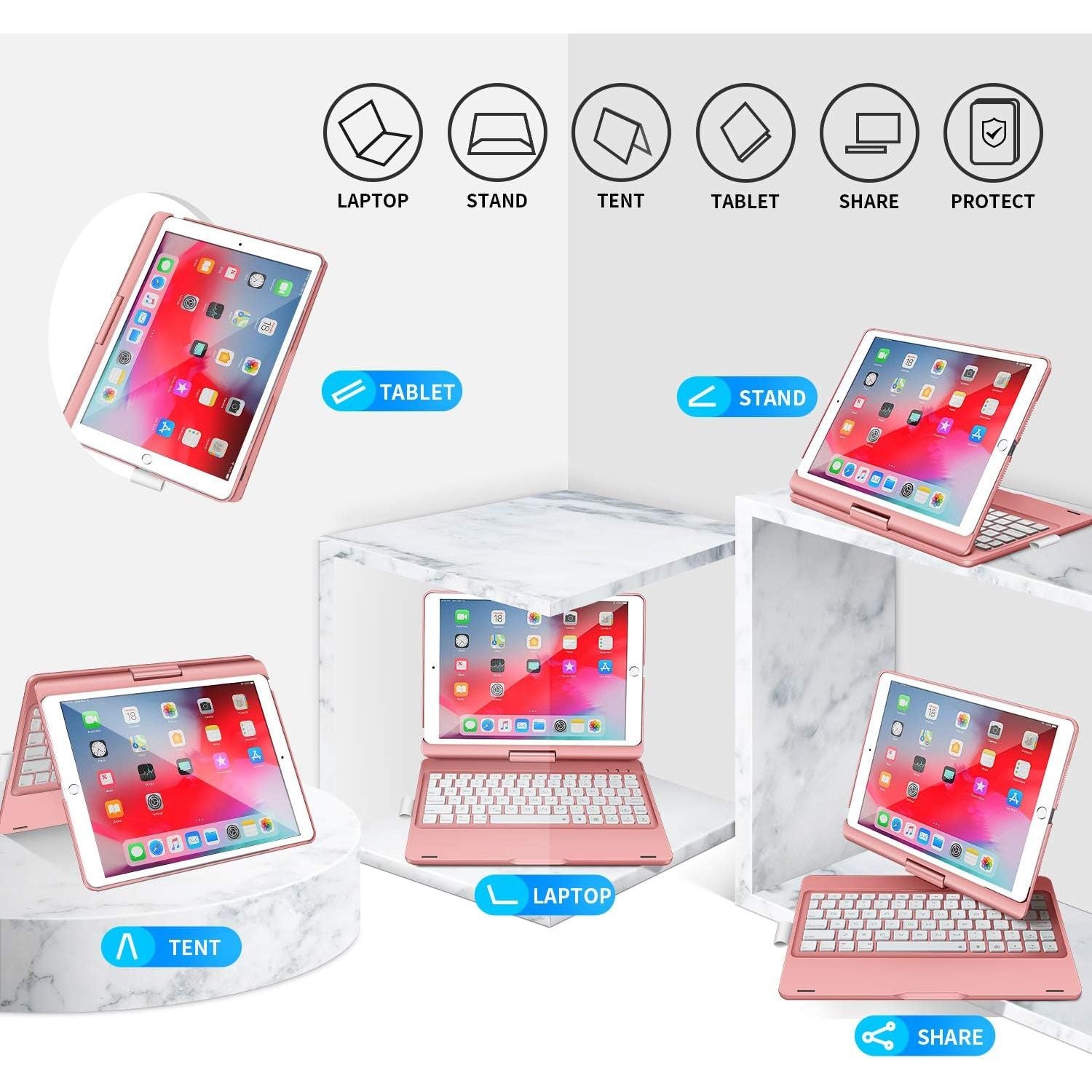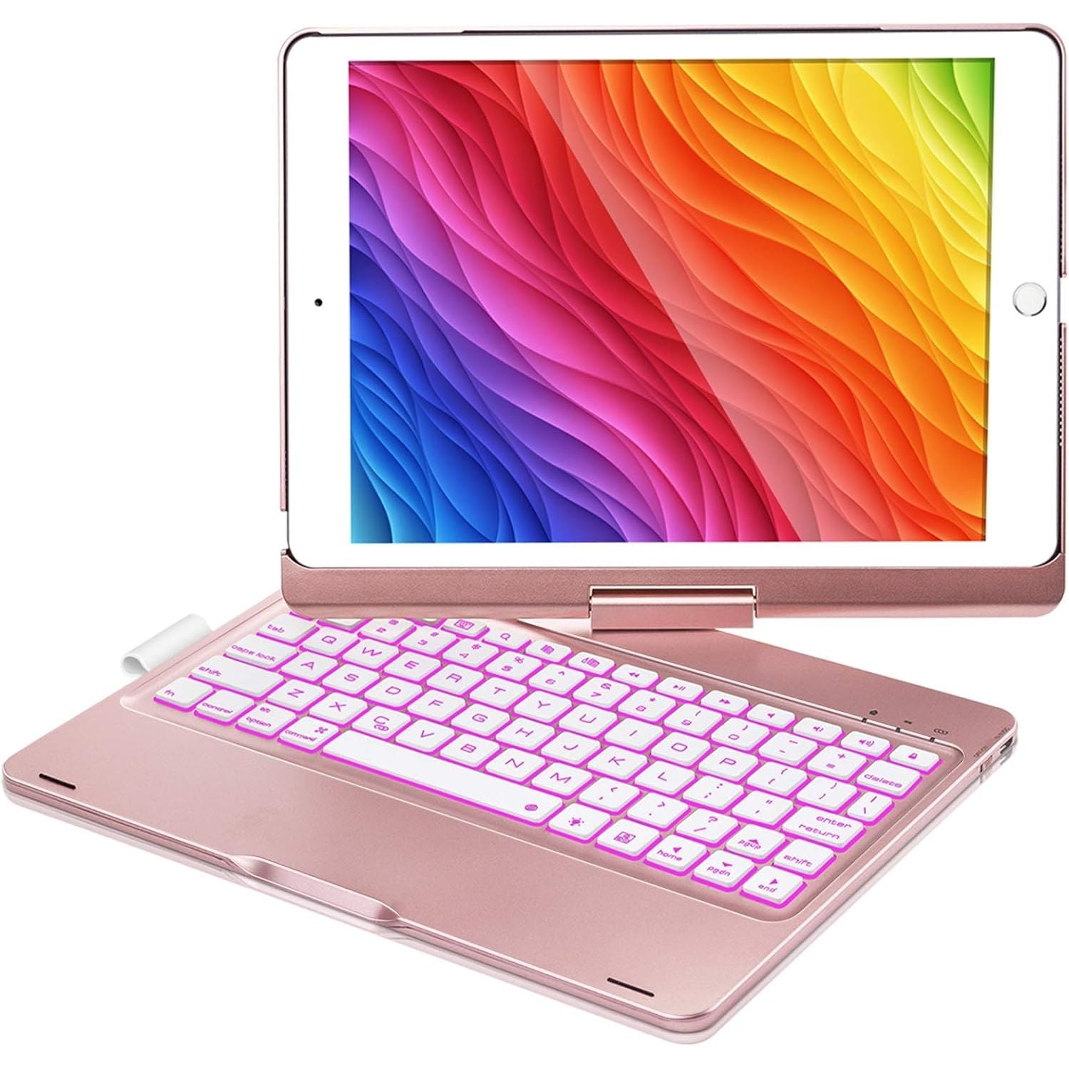 - BABG Keyboard Case for iPad 6th/5th 9.7inch, iPad Pro 9.7, iPad Air 2, iPad Air 1,Non-Trackpad,360°Swivel,7 Use Modes,Backlight- Rose Gold