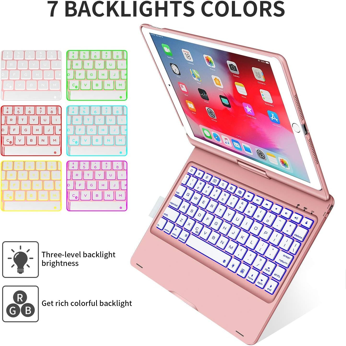 BABG Keyboard Case for iPad 6th/5th 9.7inch, iPad Pro 9.7, iPad Air 2, iPad Air 1,Non-Trackpad,360°Swivel,7 Use Modes,Backlight- Rose Gold