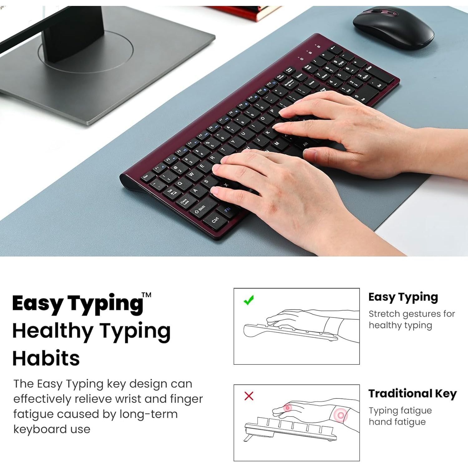 - cimetech EasyTyping KF10 Wireless Keyboard and Mouse Combo, [Silent Scissor Switch Keys][Labor-Saving Keys] Ultra Slim Wireless Computer Keyboard and Mouse, Easy Setup for PC/Laptop/Windows - Wine Red