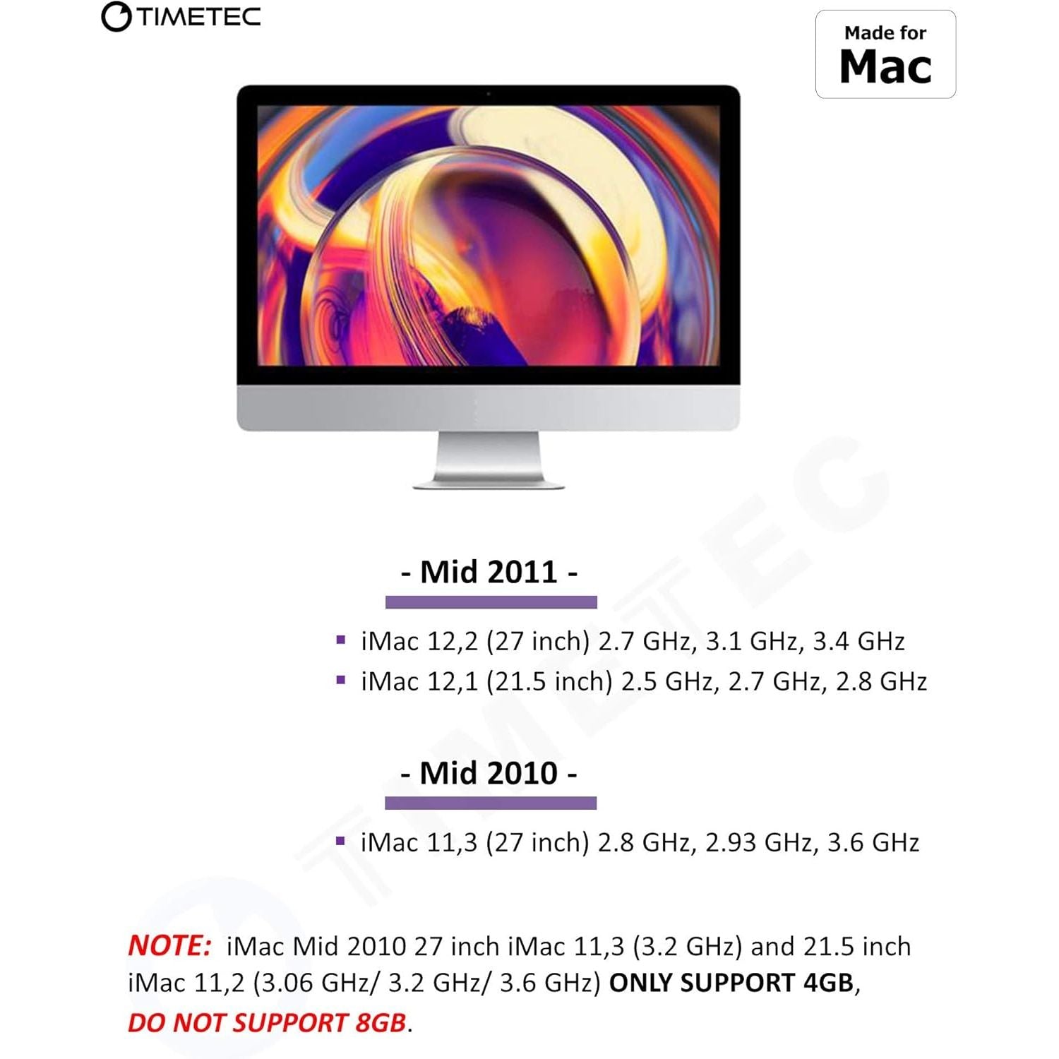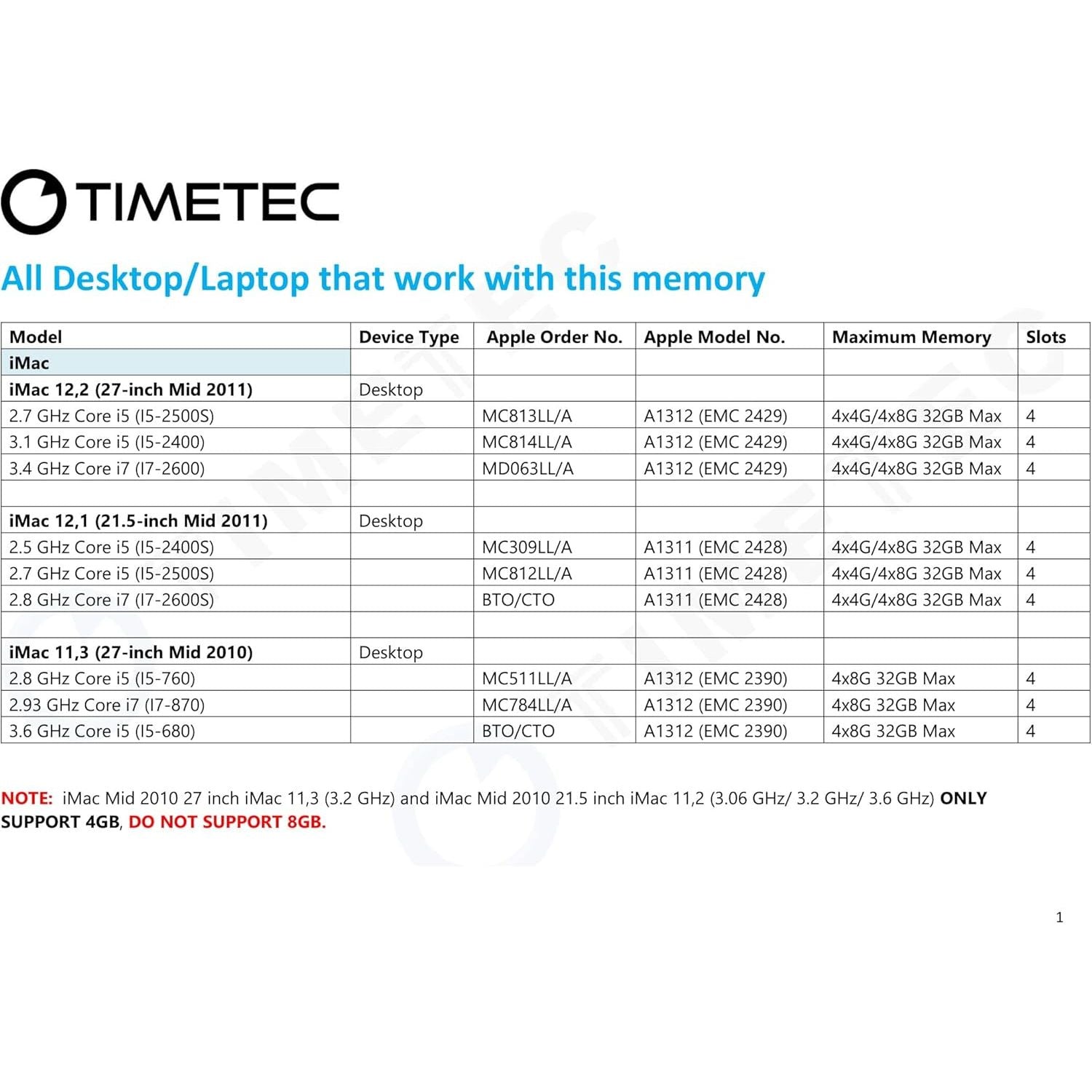 - Timetec 32GB KIT(4x8GB) Compatible for Apple DDR3 1333MHz PC3-10600 CL9 for iMac (Mid 2010 27 inch, Mid 2011 21.5/27 inch) SODIMM Memory Module MAC RAM Upgrade for iMac 11,3 / iMac 12,1 / iMac 12, 2