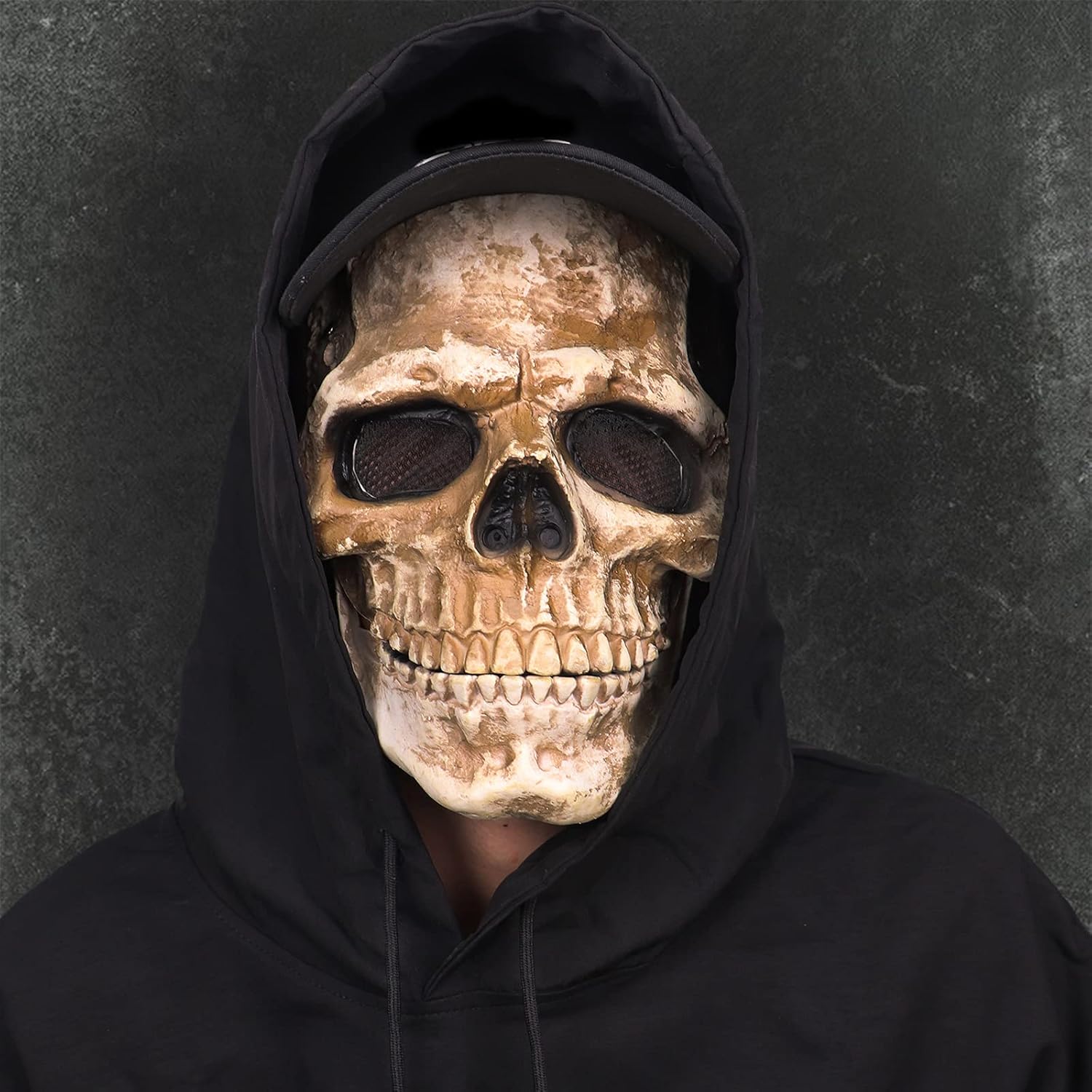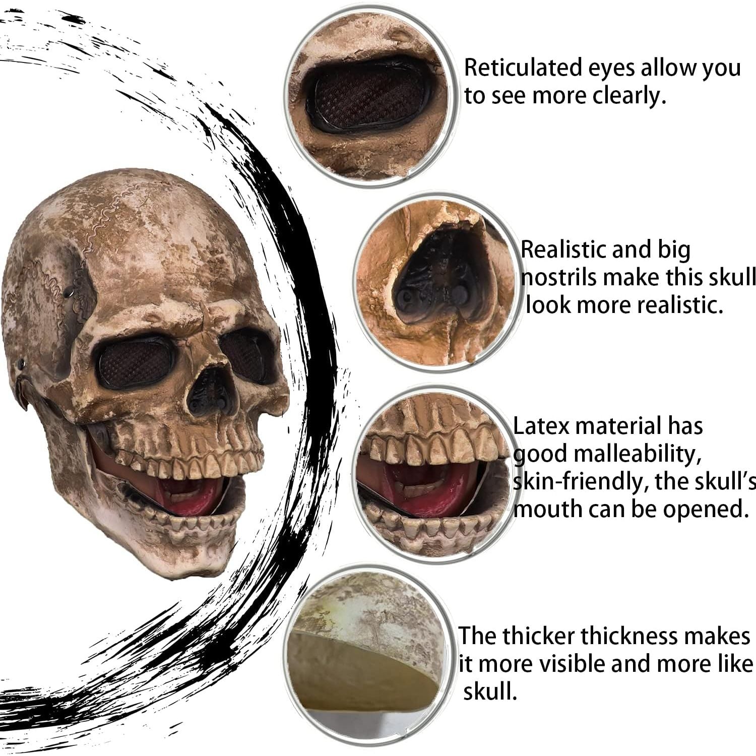 - CosTribe Creepy Full Head Skull Mask with Moving Jaw Halloween Scary Latex Helmet for Cosplay Party Props