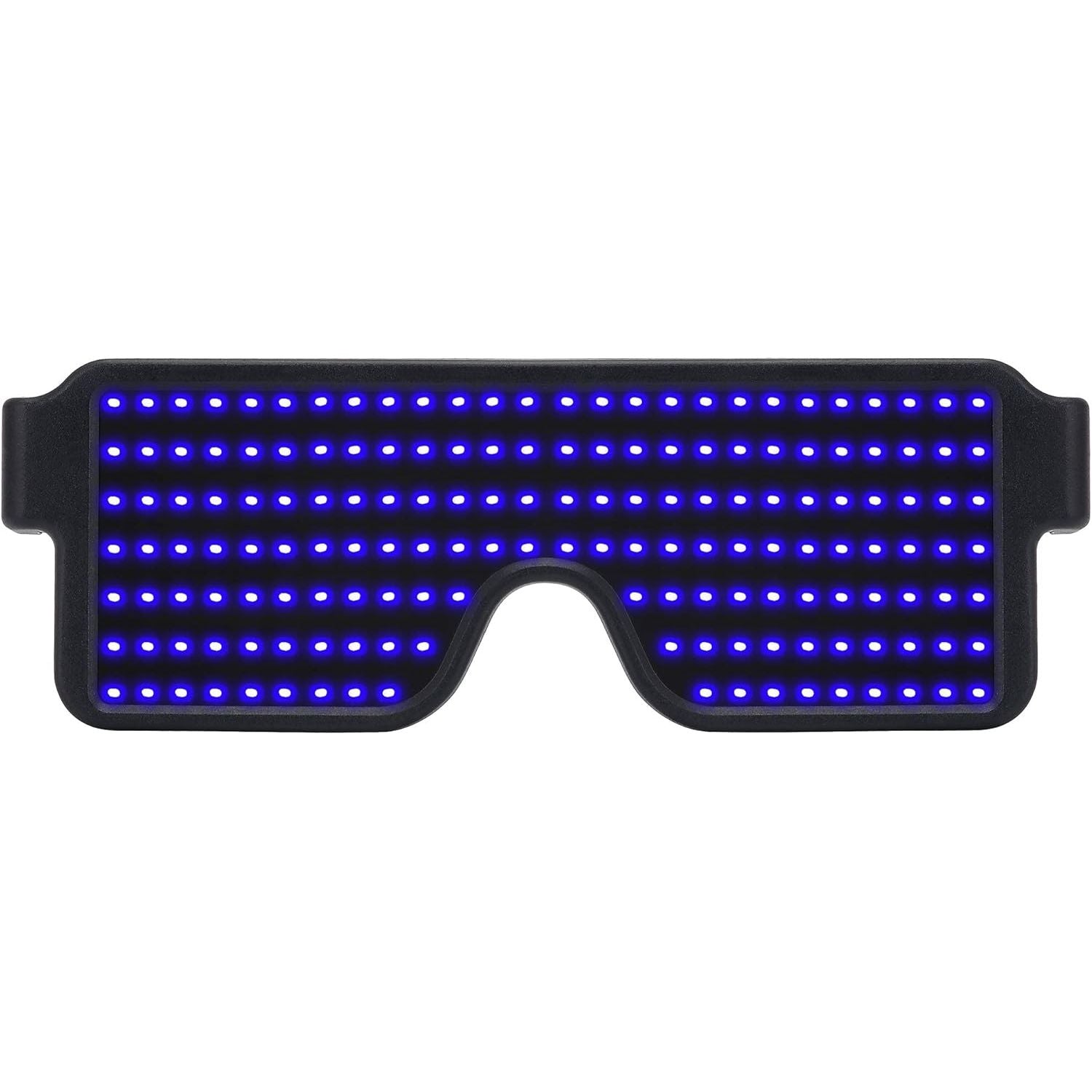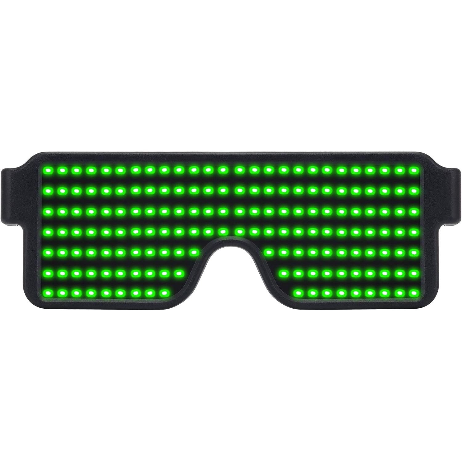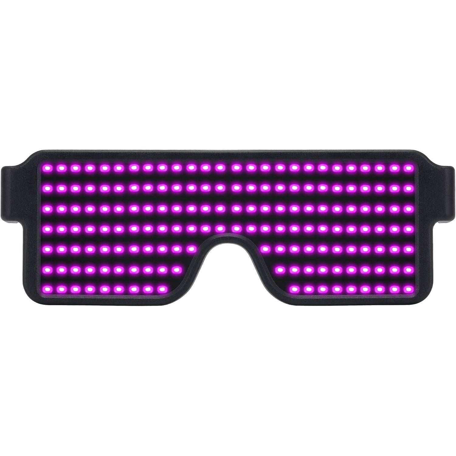 - LED GLOWING GLASSES WITH 8 PATTERNS -- Fireworks pattern, Dollar pattern, Kiss fish pattern, Arrowhead pattern, Twinkle pattern, Skull pattern, Heartbeat pattern, Heartbroken pattern. Long press the button for 3 seconds to turn the glasses on/ off, short press the button to change the pattern. 164 pieces built-in LED bulbs make the glasses super bright and cool!