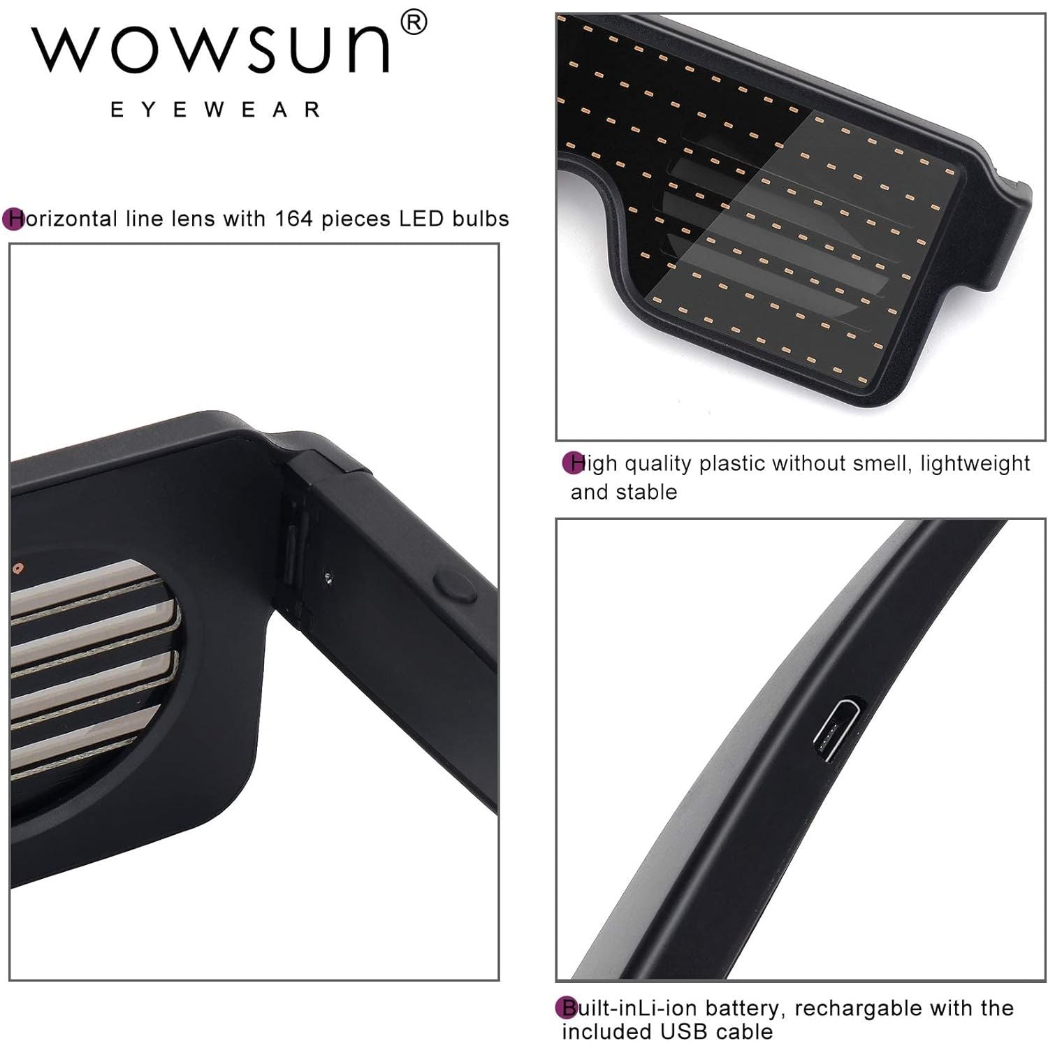 - WOWSUN LED Glasses Light Up Dynamic Party Favor Glasses Festival Christmas USB Rechargeable LED Rave Glowing Flashing Glasses