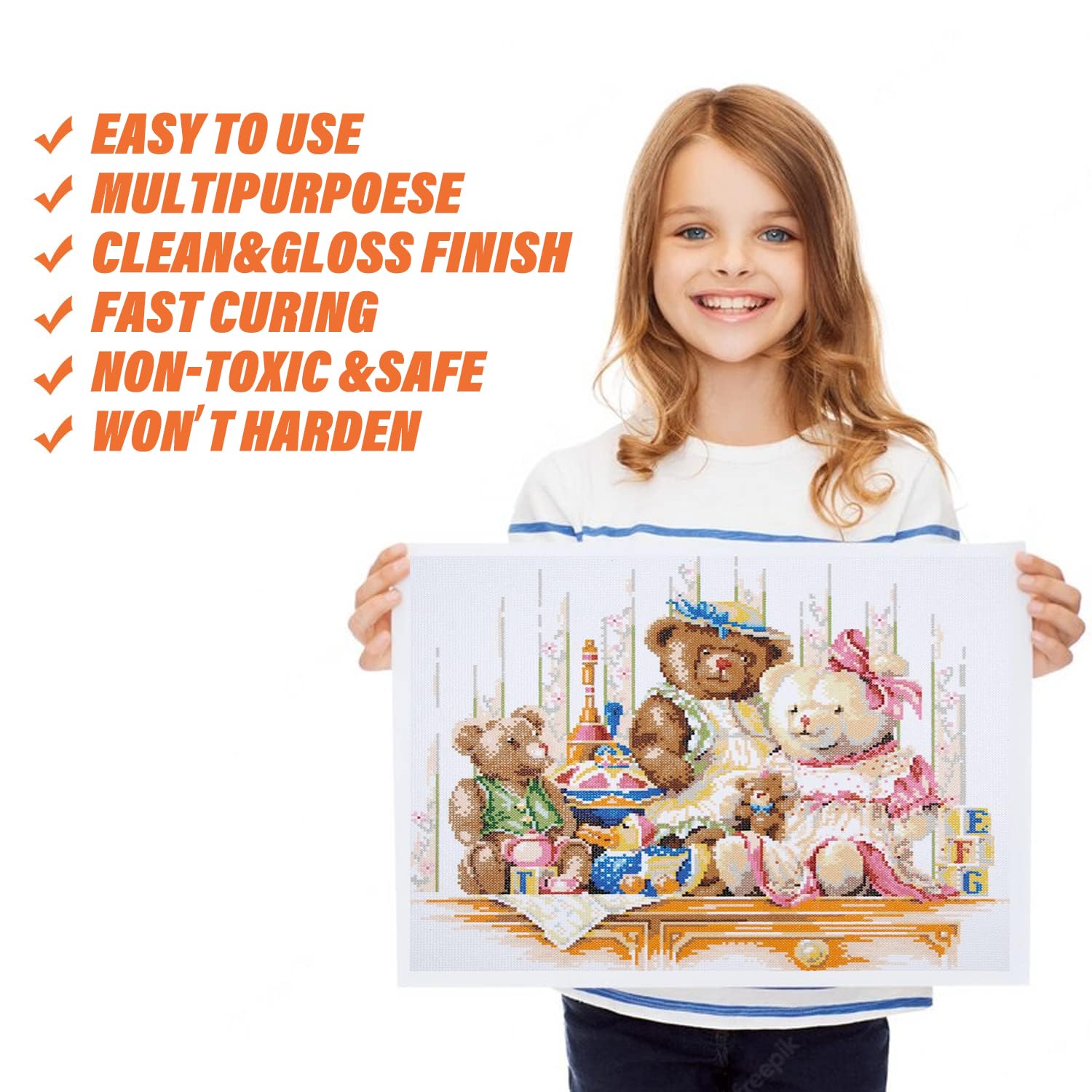 - 💎Easy to Use - Just directly apply on the surface of the diamond painting. Fast-drying for multiple coat build up. Only take 15 minutes for the surface dry, and 30 minutes dry completely, depending on the thickness of each layer. Check the drills after it dries to make sure every drills are covered.