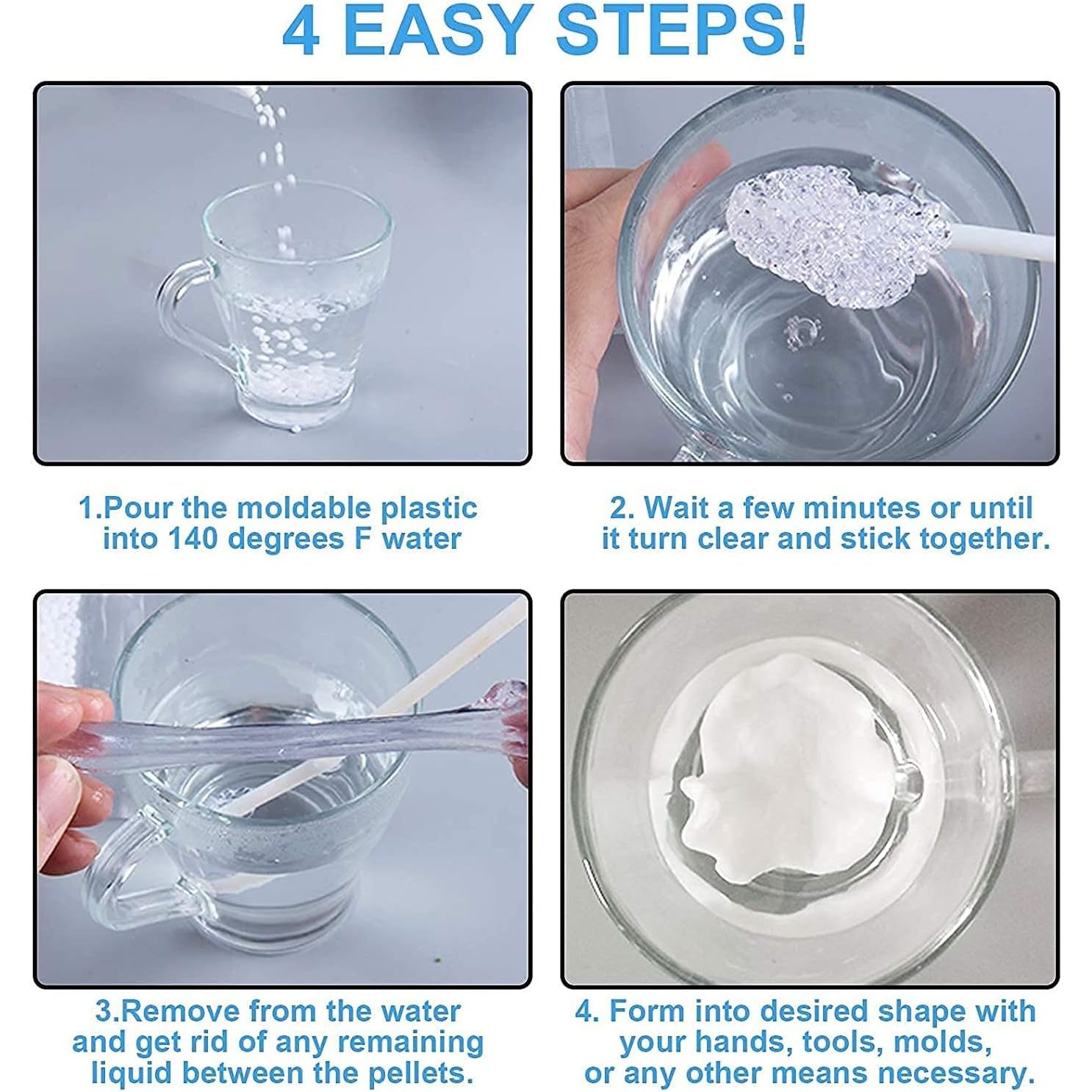 - EASY TO USE: Plastic molding beads becomes soft in hot water (140°F) and hard at room temperature. No special equipment is needed, just warm water.