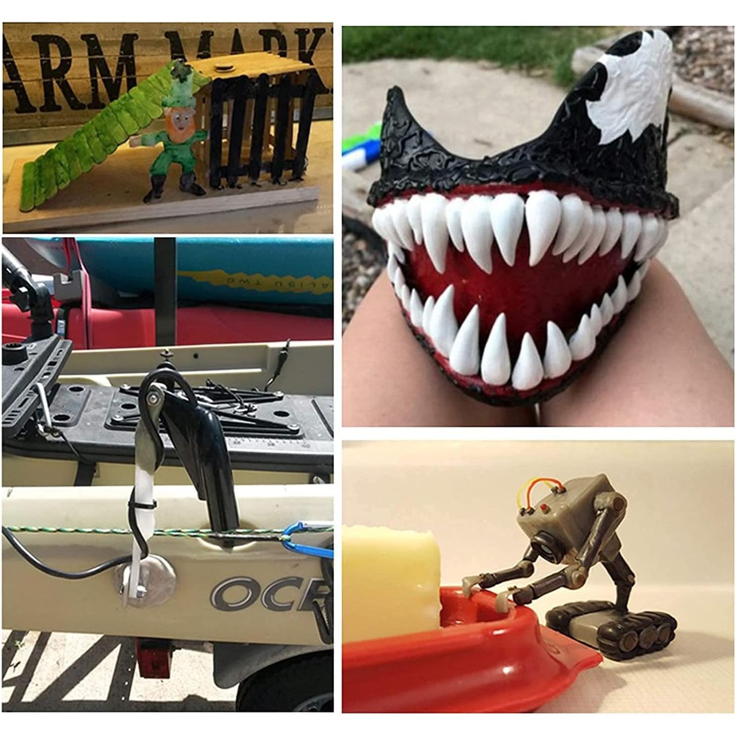 What's the moldable plastic? 1.Moldable plastic beads is a reusable, strong and non-toxic advanced modeling compound that becomes soften in hot water (140°F) and harden at room temperature. 2. It is a lightweight, polyester thermoplastic plastic beads which acts like clay when warm, easy to mold and shape but once cooled it becomes a strong plastic. 3. Moldable plastic is reusable. You can reheate over and over again and re-molded 4. Thermoplastic polymer can be painted, drilled, sanded, varnished, machined, carved or attached to other materials. Instructions 1. Prepare a container for the polymorph plastic; 2. Pour appropriate amount of moldable plastic beads into the container; 3. Pour boiling water into the container; 4. Wait for the thermoplastic to become transparent; 5. Carefully remove from the water and get rid of any remaining liquid between the pellets; 6. Make it into the required shape by hand, mold or other necessary tools; 7. Let it cool to room temperature; 8. Color your work. Product Applications 1. Repair: An extremely versatile solution for repairs. Re-attach, replace or rebuild broken parts. Repair a handle or grips, fix a small leak. Use to cover exposed wires or even make a nut for your bolt. Modify your mouse or tools to fit your hand ergonomically, reinforce fragile pieces or cover sharp edges. 2. DIY: Make wall brackets, hooks, molds, toys. Make your own action figures or accessories. 3. ART: Use for art and craft projects at clubs and other places. Make a variety of crafts, as long as you can imagine. 4.Cosplay: Create props, masks, decorations, jewelry, or other costumes for Halloween or theater. Make unicorn horns, fake teeth, elf ears and festive decorations.