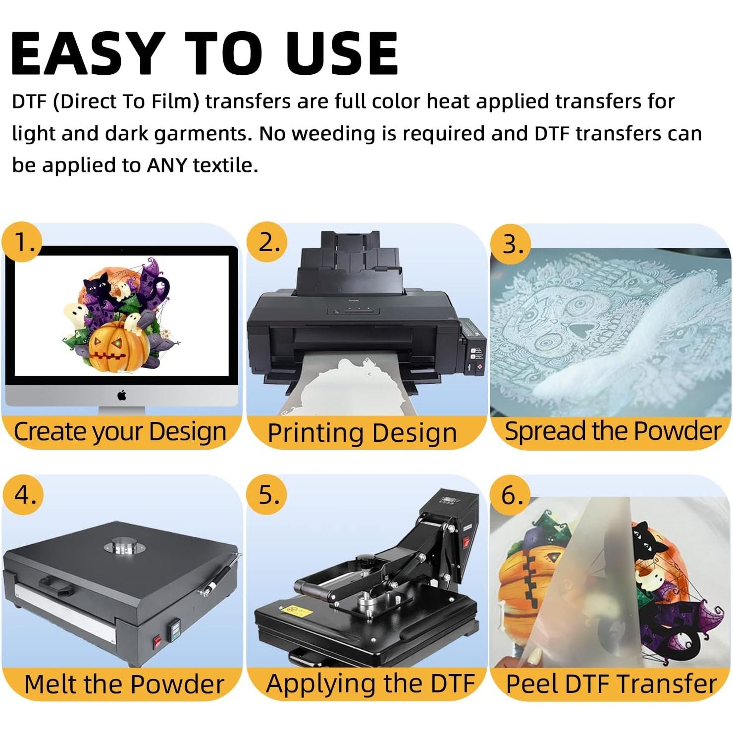 OneMoreBuck DTF Transfers can be used for shirt labels, adult & children's apparel on cotton, polyester, blends and many other materials. DTF is perfect for dark or light colored shirts. Single color and full color images are printed digitally to achieve highly detailed, durable prints. Benefits Versatility on Materials DTF can be applied on a wide range of materials including, cotton, nylon, treated leather, polyester, 50/50 blends and more (light and dark fabrics). Cost Effective Can save up to 50% white ink. Supplies are also significantly more affordable. No Pretreat Required If you are coming from a direct-to-garment (DTG) background, you must be familiar with pretreating the garments before printing. With DTF, you no longer have to worry about pretreating the garment prior to printing. No A+B Sheets Marrying Process If you come from a white toner laser printer background, you’ll be pleased to hear that DTF doesn’t require the marrying process of expensive A+B sheets. Production Speed Since you essentially take out a step of pretreating, you’re able to speed up production. Washability Has been proven through testing to be equal to if not better than traditional direct-to-garment (DTG) printing. Easy Application DTF allows you to apply the artwork on difficult/ awkward parts of the garment or fabric with ease. High Stretchability and Soft Hand Feel No Scorching