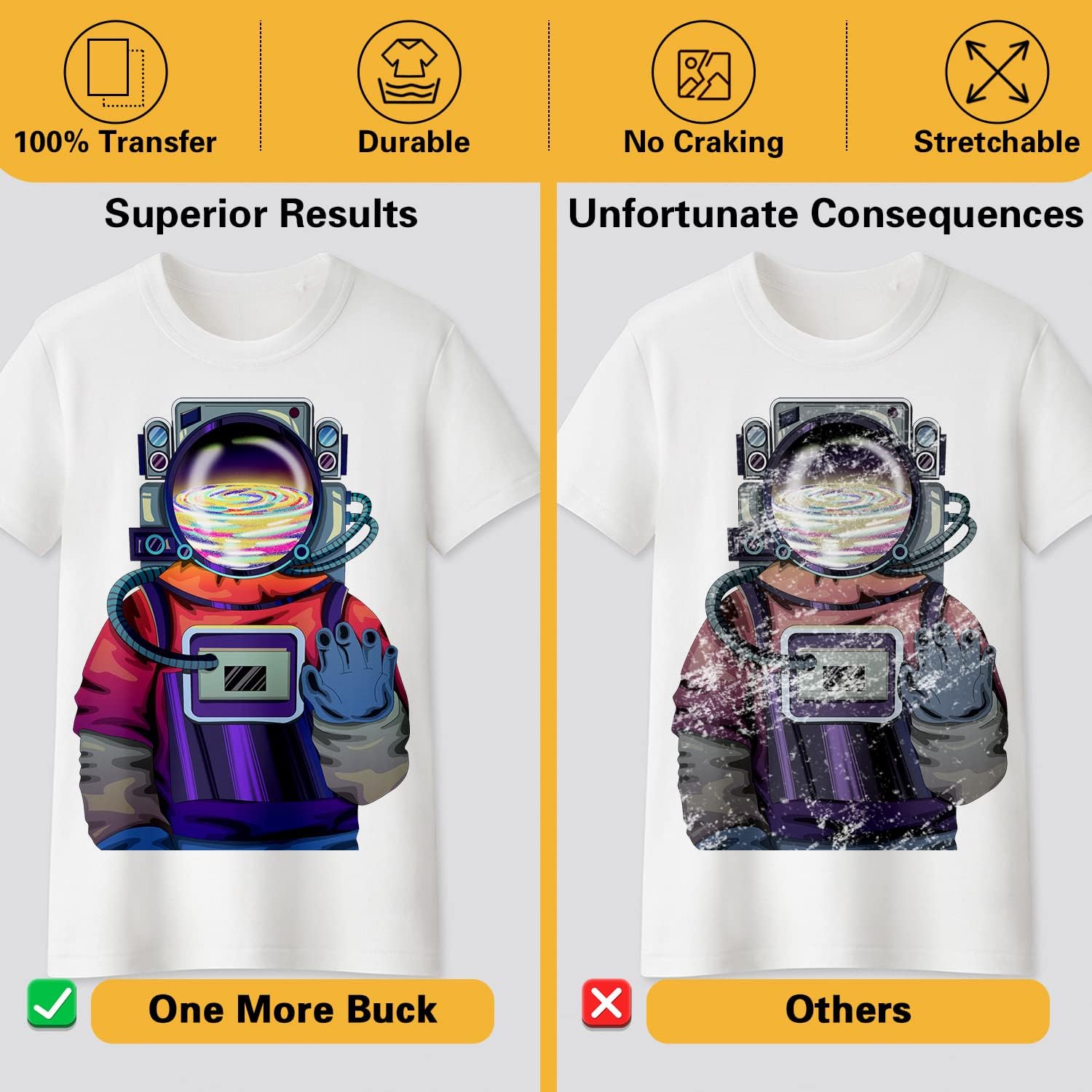 OneMoreBuck DTF Transfer A4 30 Sheets, Matte Clear PreTreat Sheets PET Heat Transfer Paper for DIY, Direct to Film Print on Any Textile