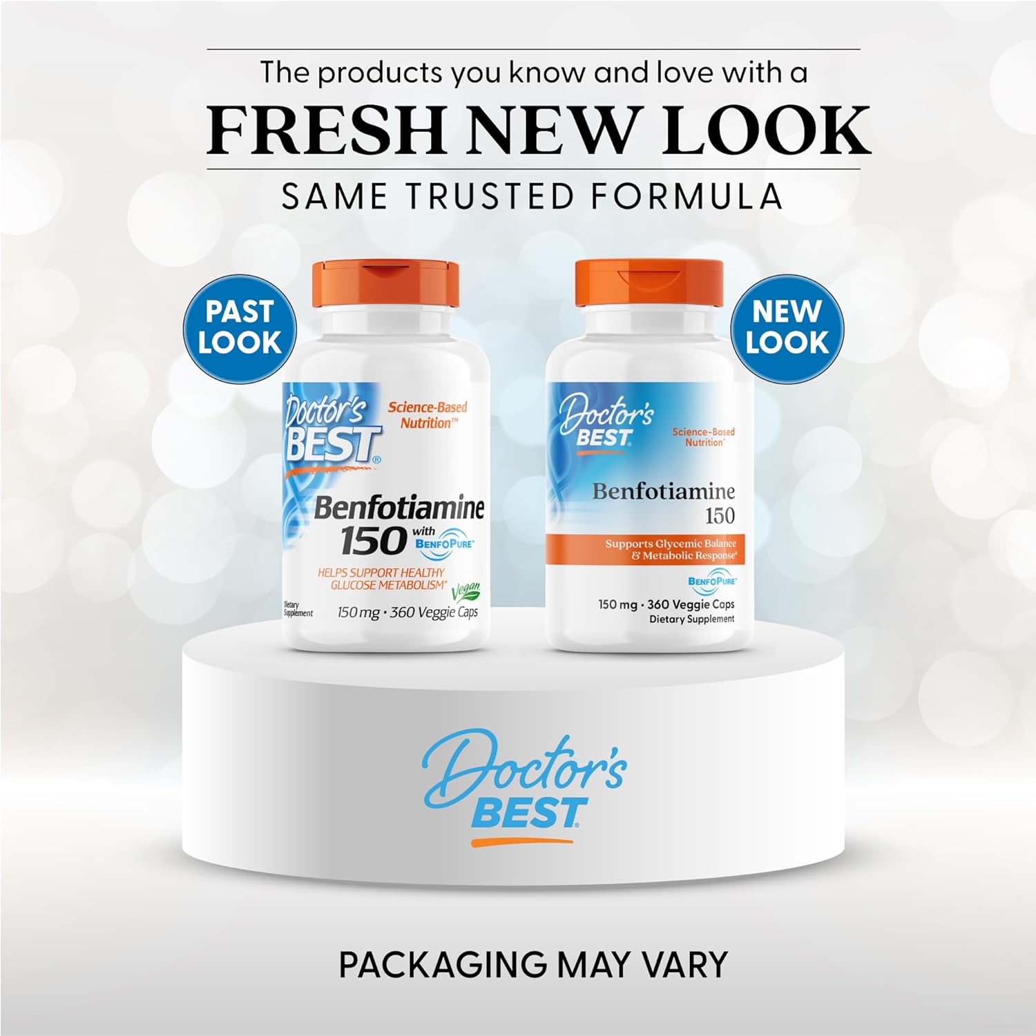 - TRUSTED AND PURE - 150mg of Benfotiamine in every capsule, 360 capsules per bottle. Vegan, Non-GMO, Gluten-Free and Soy-Free. Doctor's Best Benfotiamine is crafted with care, offering a clean and reliable supplement for your well-being.