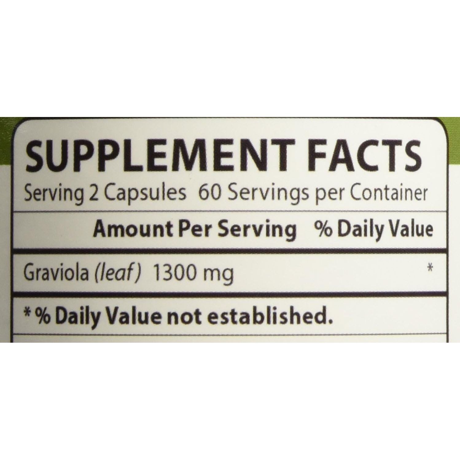 - Graviola 1300mg Per Serving. Serving size : 2 Capsules
