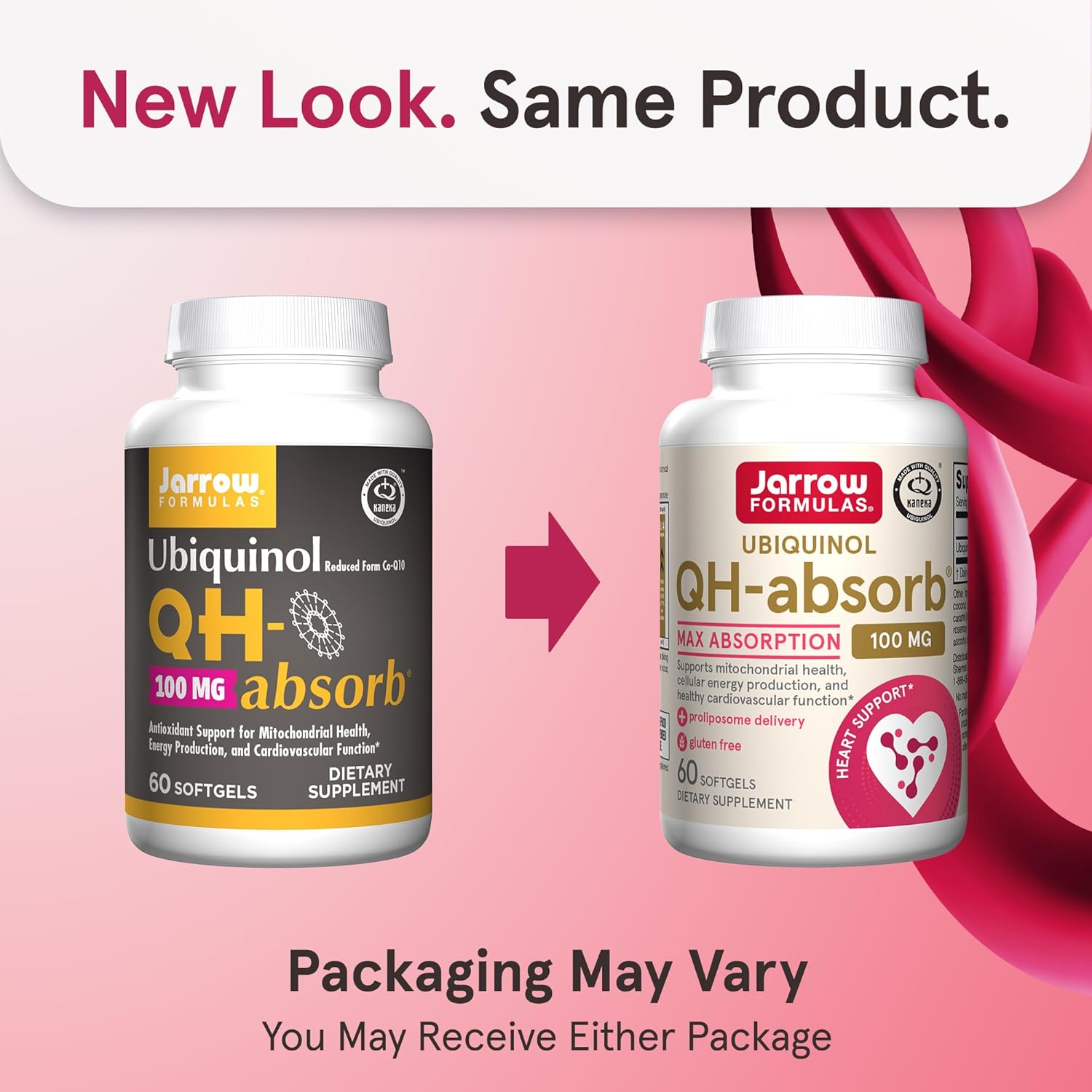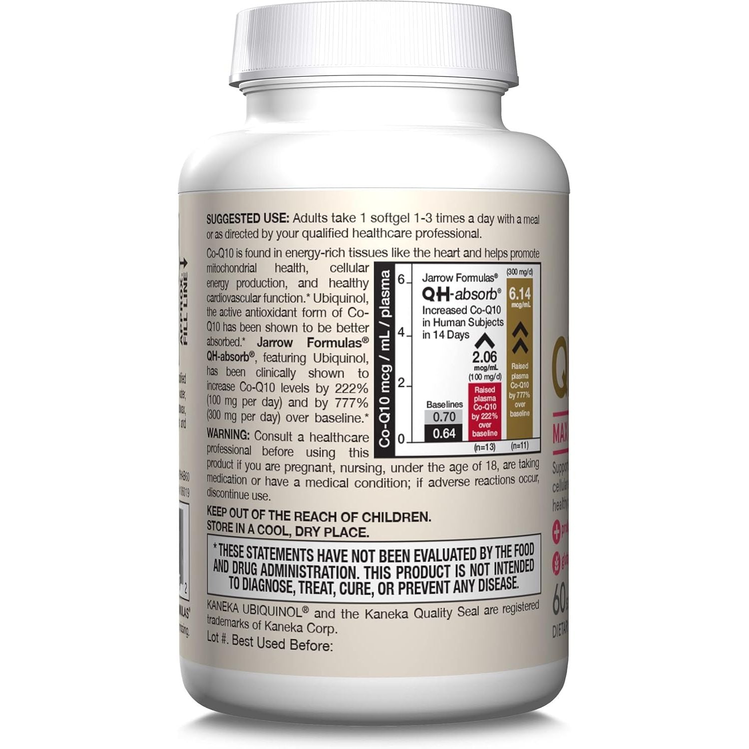 - Jarrow Formulas QH-Absorb, 100 mg, Ubiquinol Dietary Supplement for Healthy Cardiovascular Function, 60 Softgels, 60 Day Supply