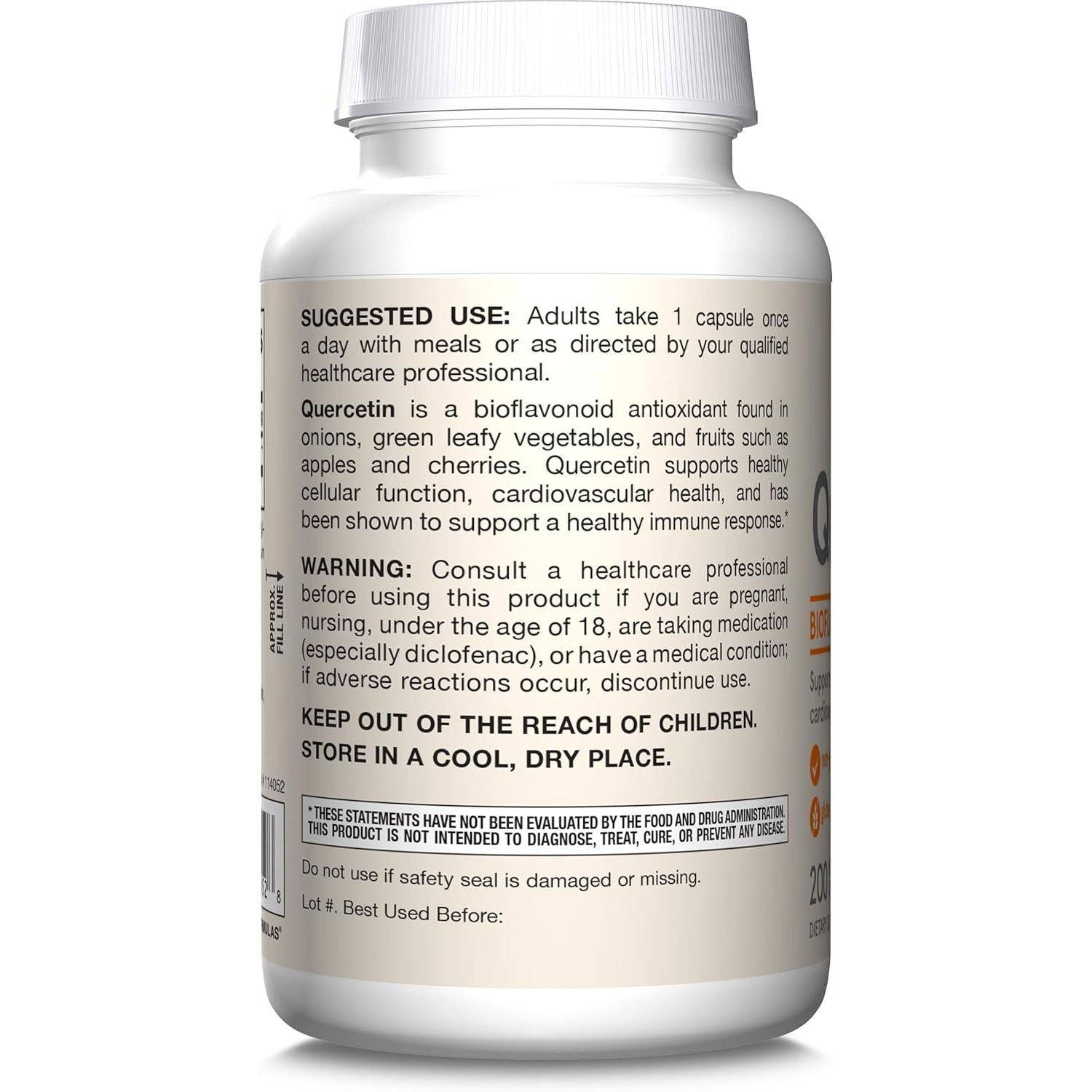Jarrow Formulas Quercetin is formulated with the primary dietary ingredient Quercetin, a bioflavonoid antioxidant found in onions, green leafy vegetables, apples, cherries, and other fruits. Each vegan capsule of Jarrow Formulas Quercetin provides 500 mg of quercetin. Jarrow Formulas Quercetin supports healthy cellular function and cellular health.* Additionally, Quercetin helps cardiovascular health by supporting blood vessel endothelial cellular integfrity and function.* Moreover, Quercetin has been shown to support the immune system, aiding a healthy immune response.* Jarrow Formulas Quercetin is is non-GMO and is also suitable for vegans, as it is made with vegetarian capsules and contains no animal-derived ingredients. Additionally, Jarrow Formulas Quercetin is gluten free, making it an excellent choice for individuals with dietary restrictions. To incorporate Jarrow Formulas Quercetin into your daily routine, adults should take 1 capsule per day with meals or as directed by your qualified healthcare professional. Jarrow Formulas's original goal has always remained the same: To design superior dietary supplements that help empower individuals to take charge of their own health.*These statements have not been evaluated by the Food and Drug Administration. This product is not intended to diagnose, treat, cure or prevent any disease.