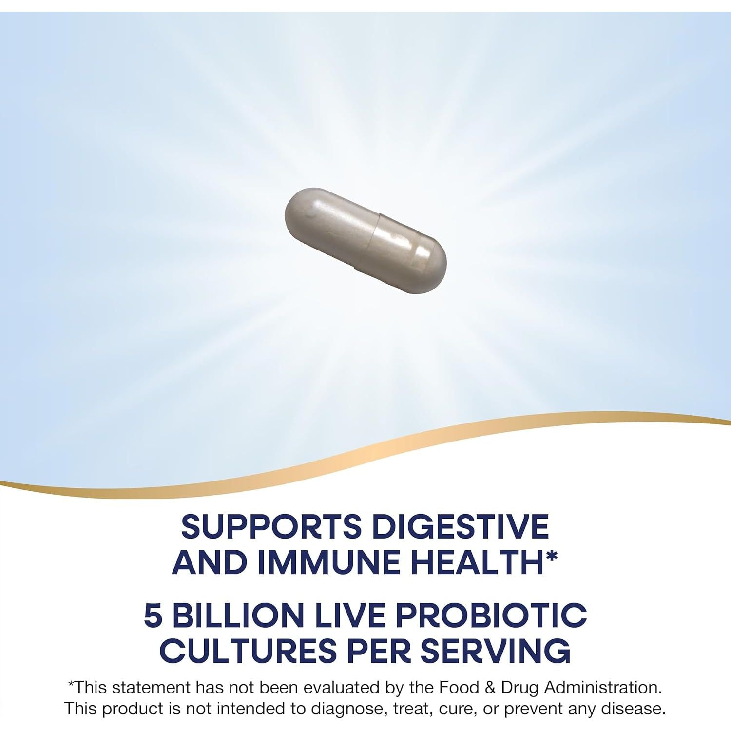 - Multi-strain formula fortifies the intestinal tract.* With 5 billion live probiotic cultures per capsule and plant-derived prebiotic fiber.