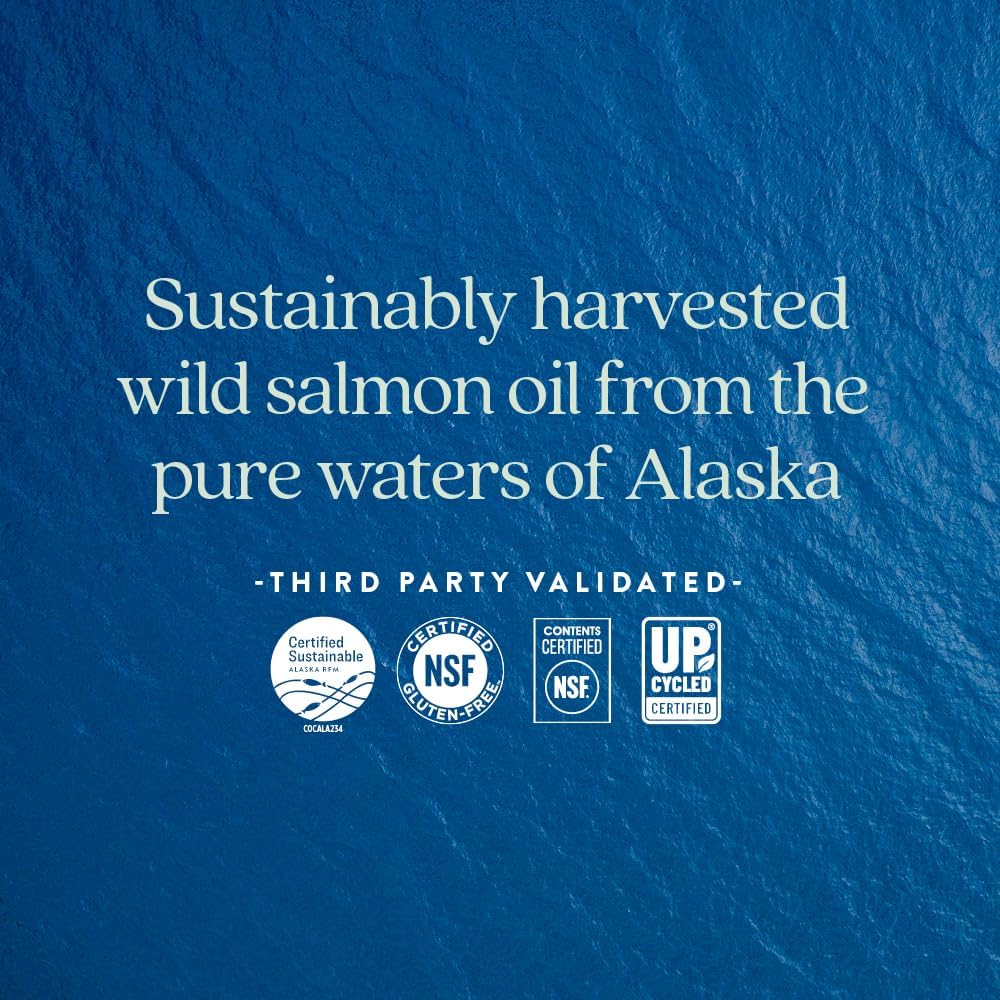 - WILD-CAUGHT FISH OIL: 100% Wild Alaskan Salmon oil - carefully regulated by the State of Alaska to meet pre-set quotas. This Upcycled Certified supplement helps to avoid food waste by using only upcycled salmon trim.