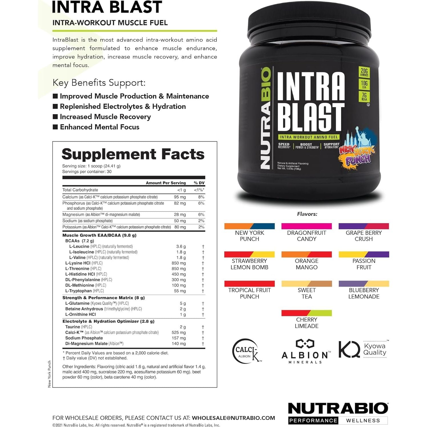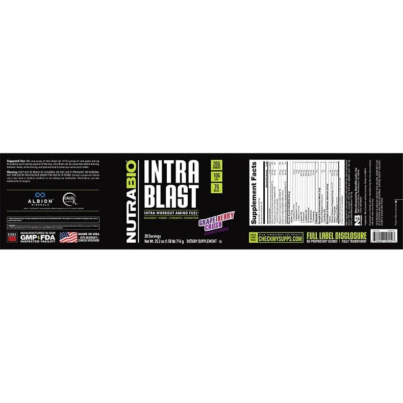 - Get Better Results, Faster: Whether bulking or cutting, NutraBio Intra Blast’s comprehensive BCAA Amino formula with 20g Amino acids designed to enhance lean muscle growth, improve recovery, and maximize results from every workout.