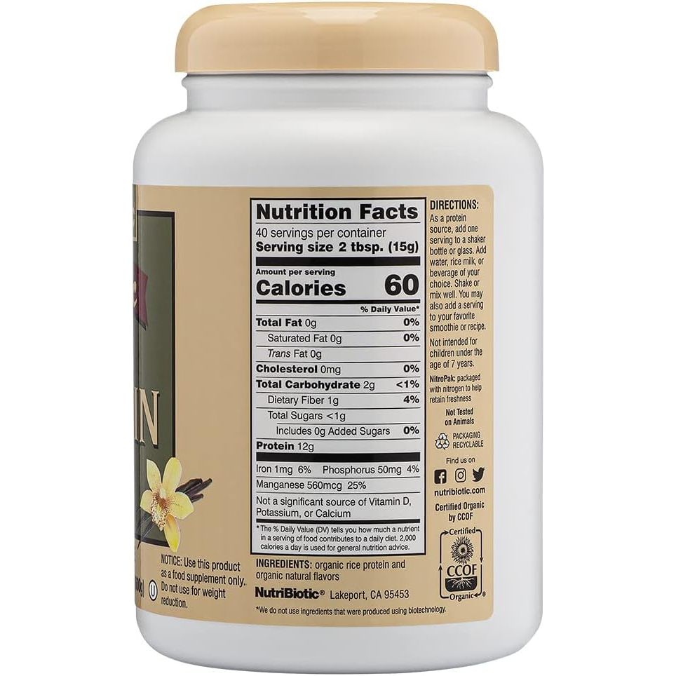When you and your family need an easily digestible, high quality protein providing an extensive array of naturally occurring amino acids—reach for NutriBiotic Vanilla Organic Rice Protein!