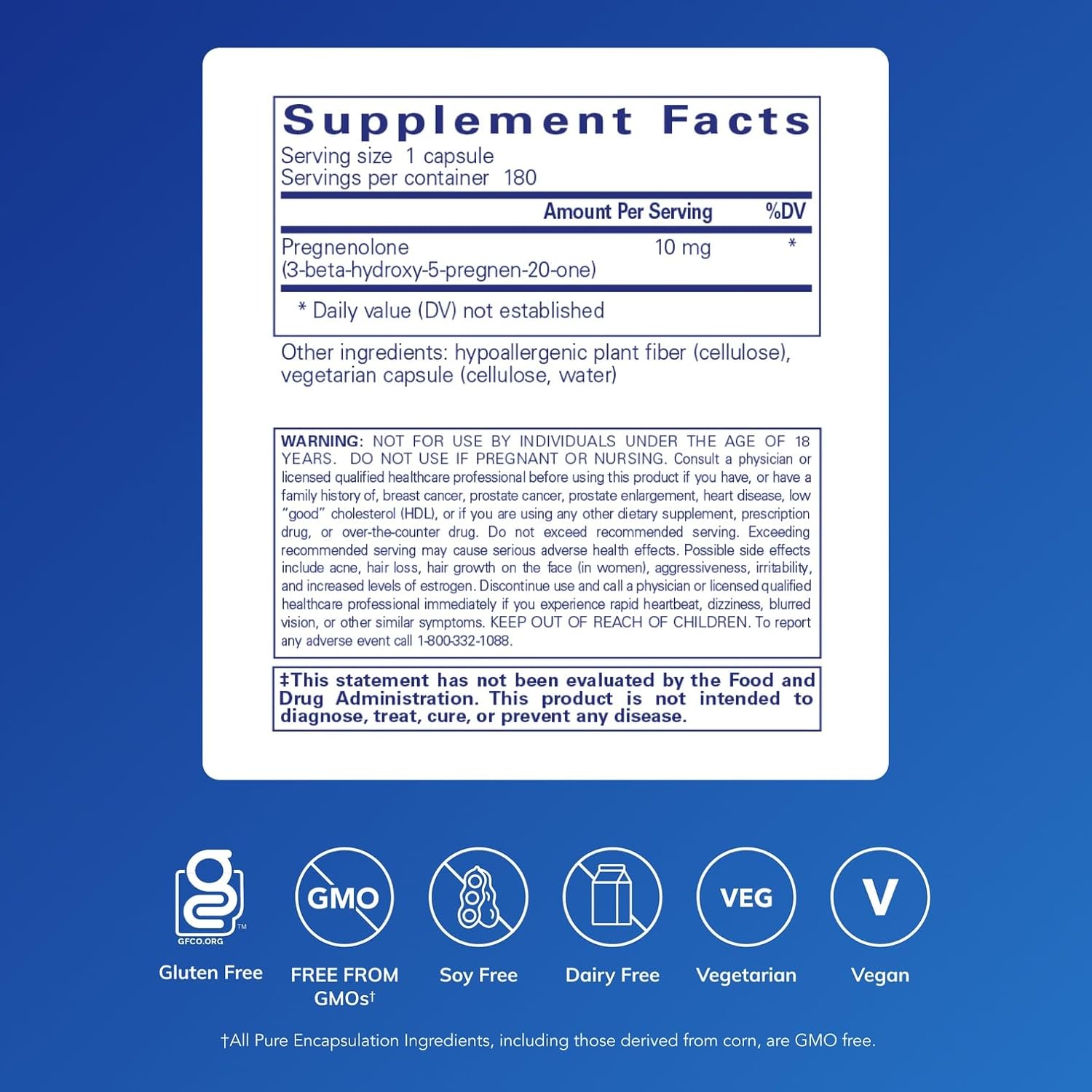 - Support Memory: Pure Encapsulations Pregnenolone 10 mg is a hormone precursor to support memory and an overall sense of well-being*